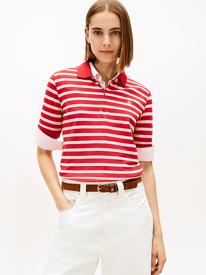 Her kadının gardırobunda mutlaka polo tişört bulunması gerekir. Çünkü bu parça hem şıklığı hem de rahatlığı bir araya getirir. İster slim fit jeanlerle, ister kumaş pantolonlarla veya denim şortlarla kombinleyin her seçenek, farklı bir tarz yaratmanıza olanak tanır. Tommy Hilfiger'in tasarımları, her kombinasyon için ideal bir seçenek sunar ve her görünümünüze eğlenceli ve sportif bir hava katar.