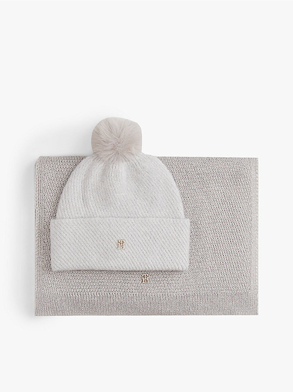 Işıltılı metalik ipliklerle örülmüş bu uyumlu atkı ve bere seti, sevdikleriniz için mükemmel bir hediye olacaktır.
