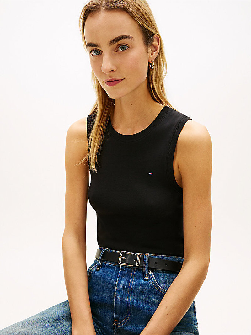 Vücut hatlarını ön plana çıkaran slim fit kesimli bu tank top, lüks ve tok bir his sunan kalın dokulu saf pamuktan üretilmiştir.