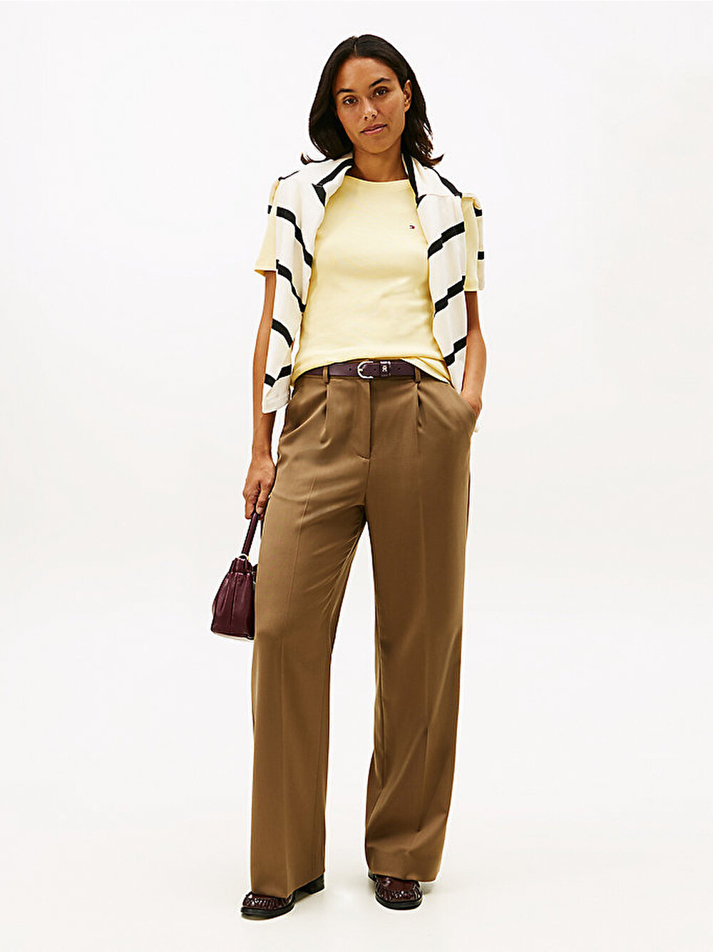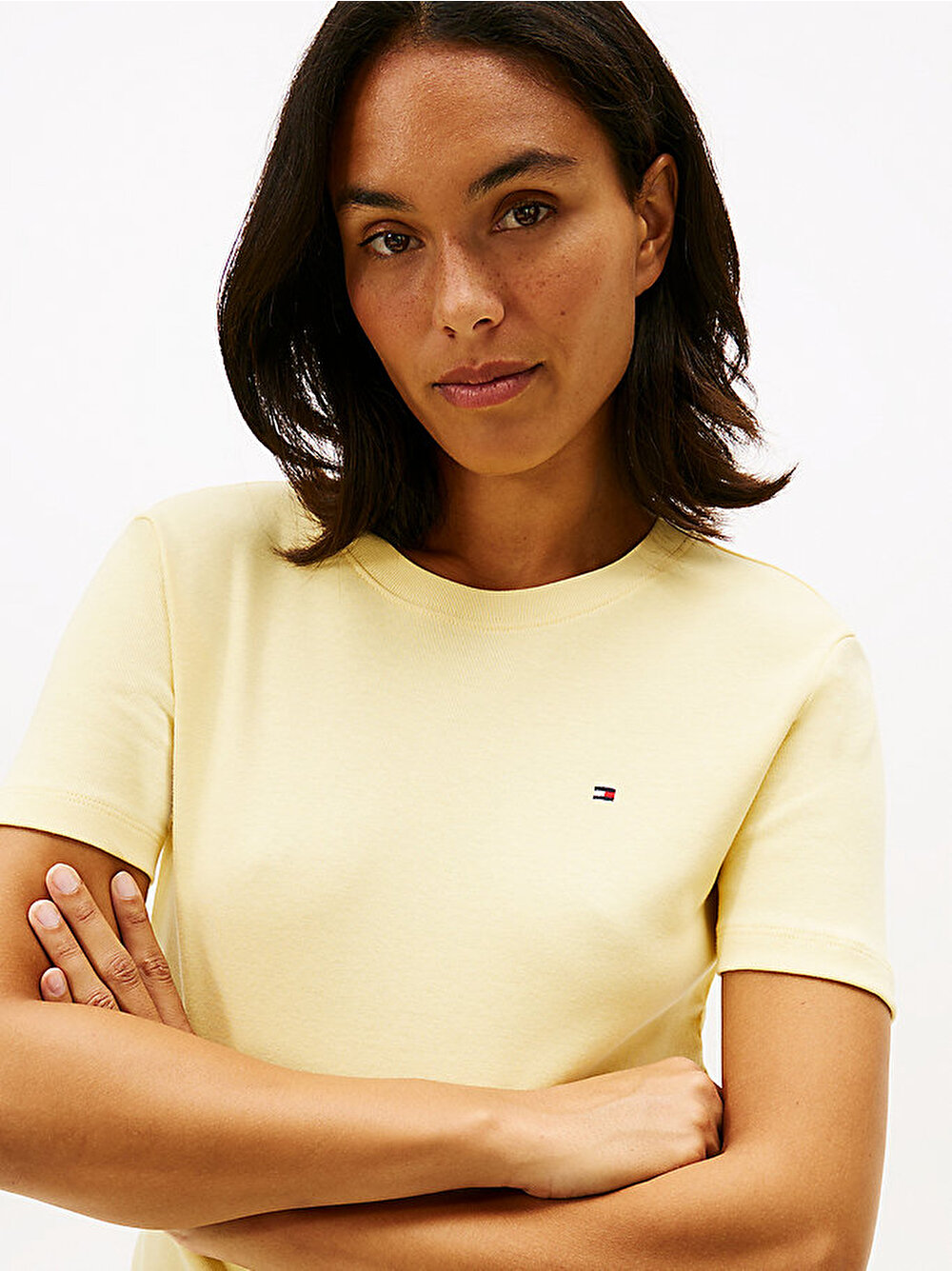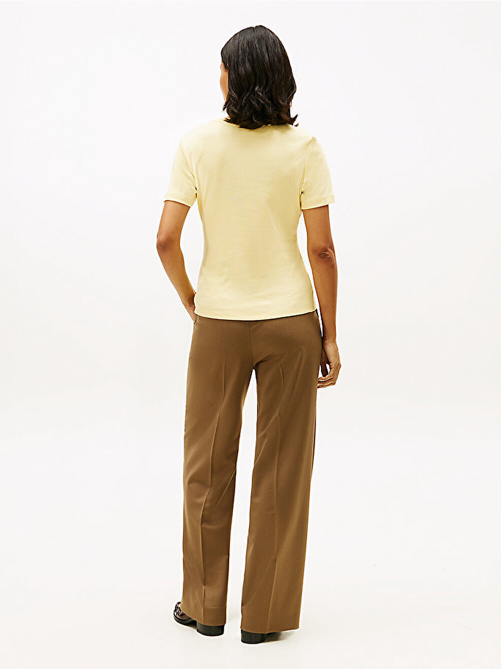 Bu çok yönlü saf pamuklu tişört, lüks ipeksi yüzeye sahip nervürlü kumaştan slim-fit kesimle üretilmiş olup vücuda oturan zarif bir duruş sergiler.