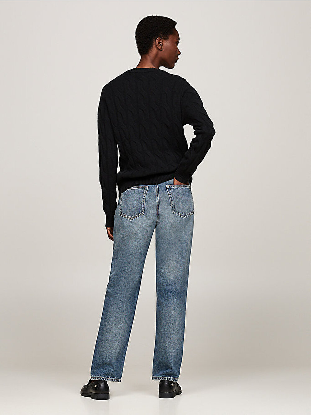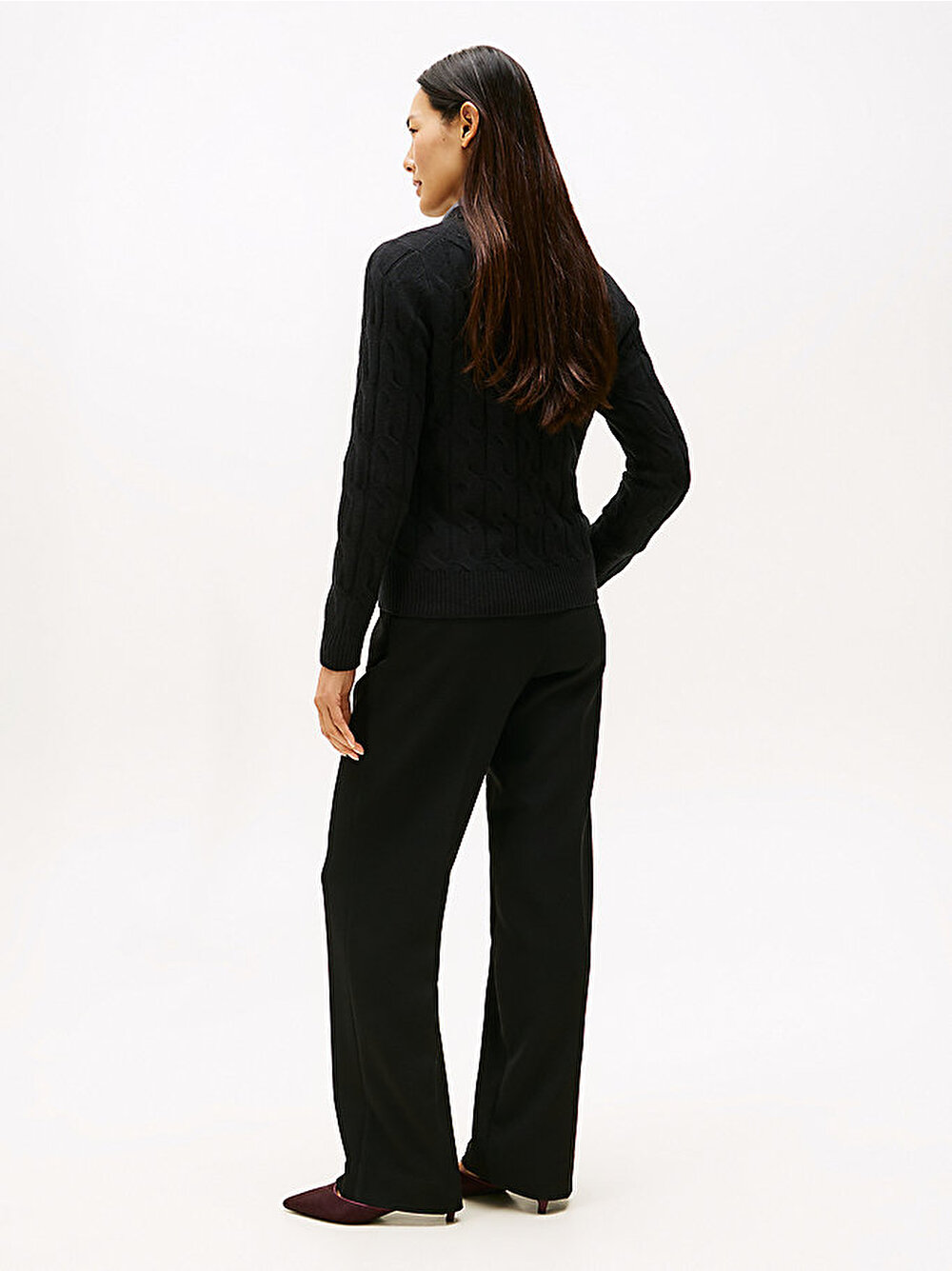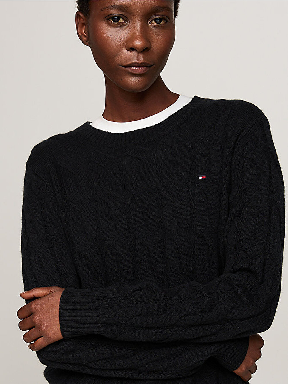 Saf yünden üretilen bu yumuşak dokunuşlu kazağın zamansız kablo örgü tasarımını seçerek miras stillere modern bir yorum getirin.