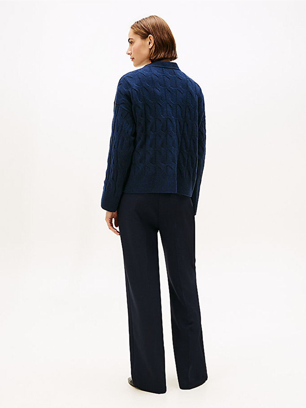 Modern oversize siluetinde kesilmiş ve lüks yumuşacık saf yünden üretilmiş bu zamansız kablo örgü hırkayla katmanlı giyinin.