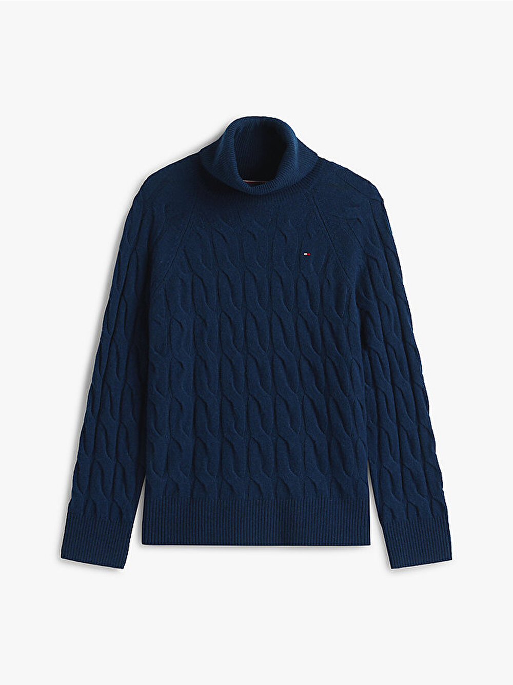 Oversize kablo örgüsü, yumuşak ve sıcacık saf yünden üretilen bu rahat rulo yaka kazağa modern bir dokunuş katıyor.