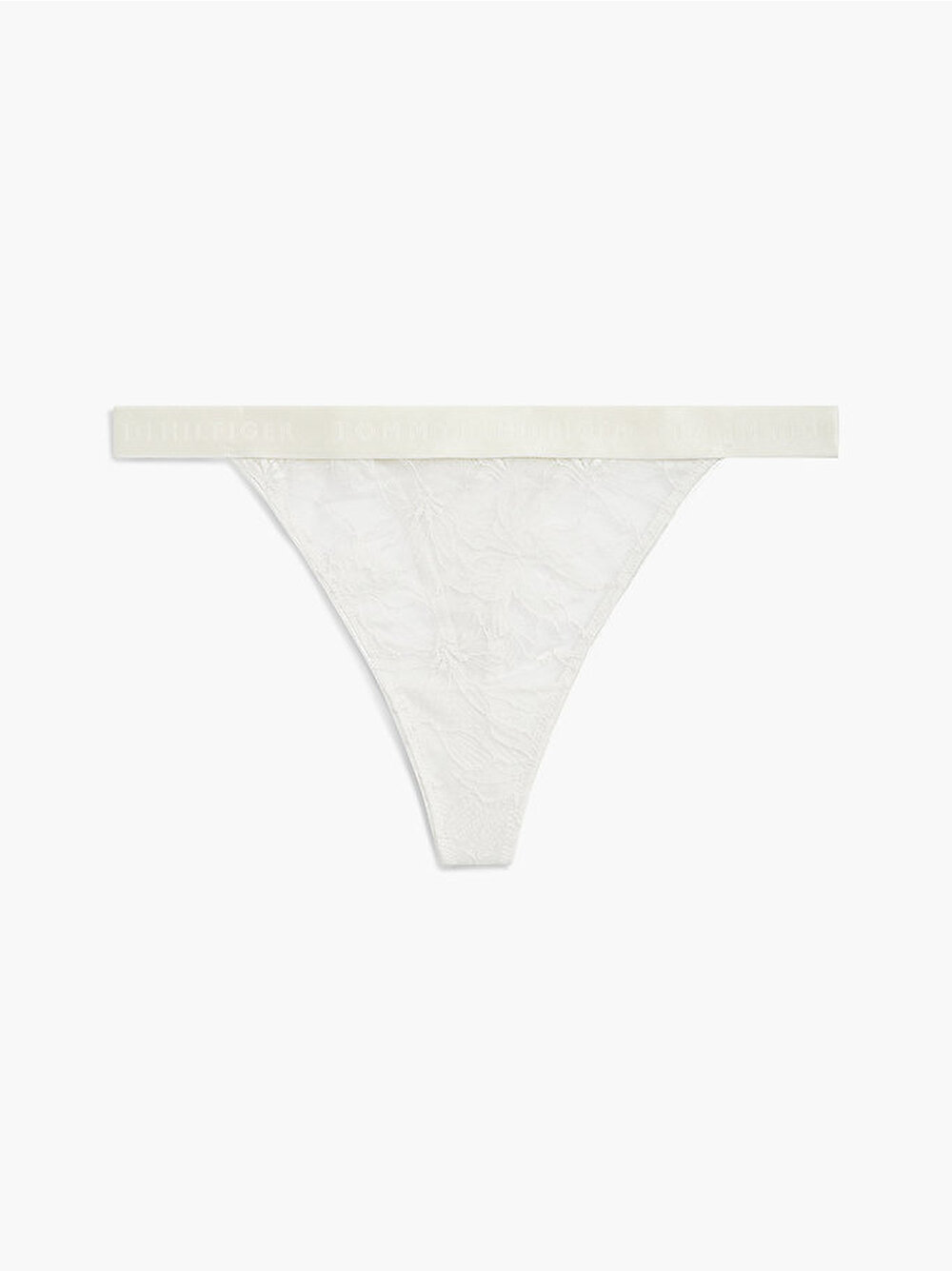 Tekrarlanan logolu bel bandıyla imza bir dokunuş sunan bu çiçek desenli dantel tanga ile iç giyim çekmecenize romantik bir hava katın.