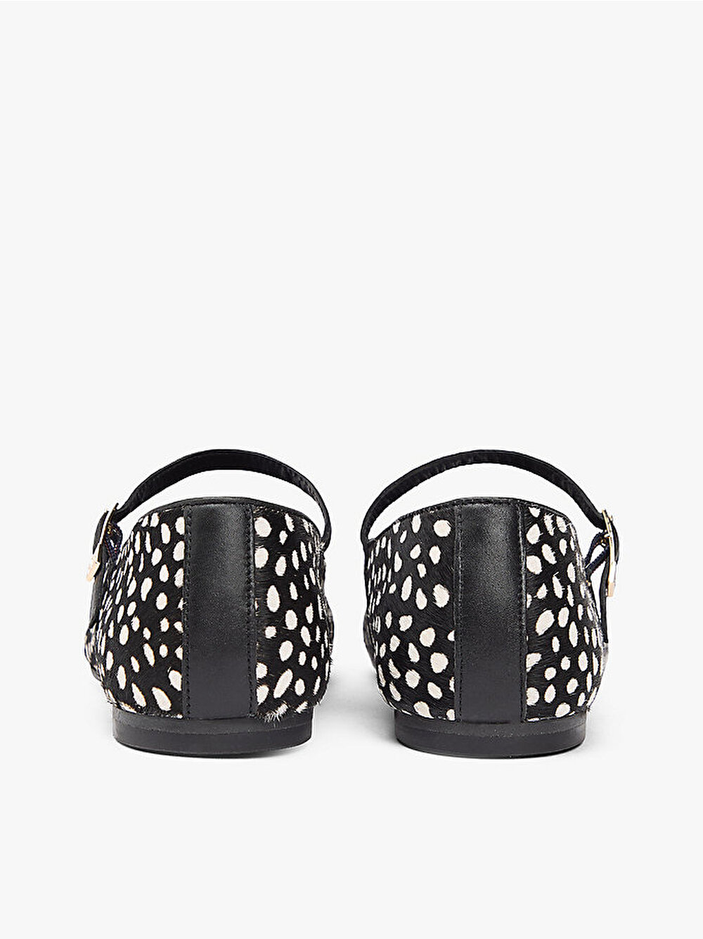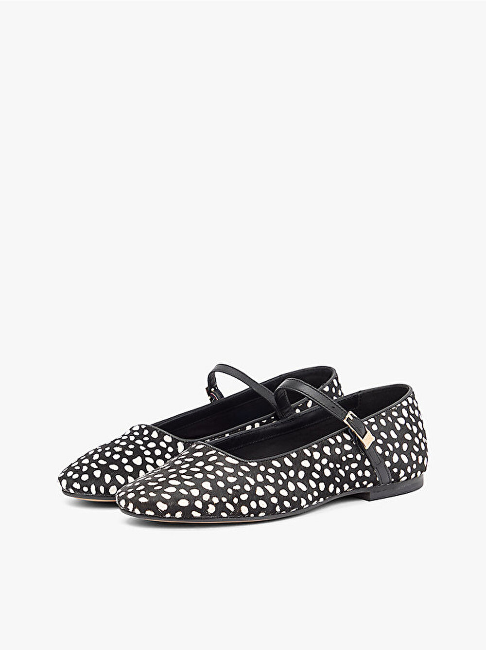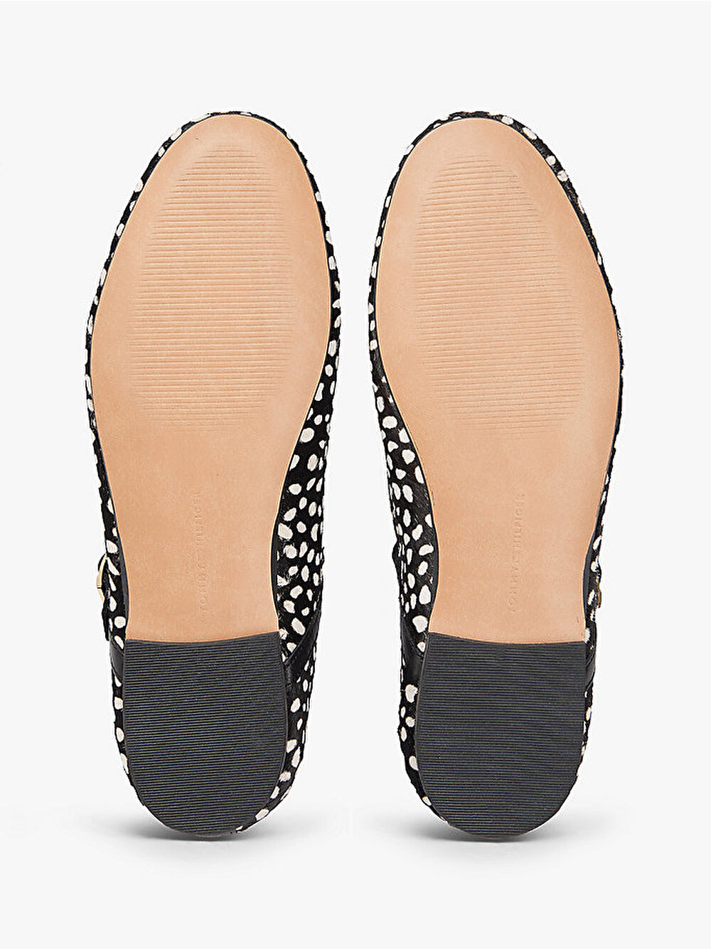 Bu babetler, baskılı dana tüyü deriden üretilmiş olup dikkat çekici kar leoparı deseni, kayış detayı ve TH monogram toka ile tamamlanmıştır.