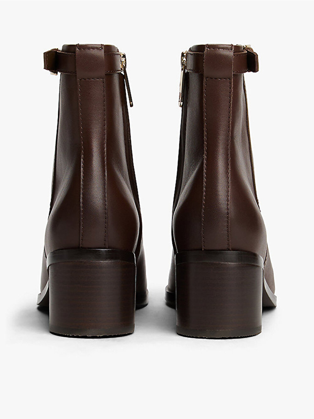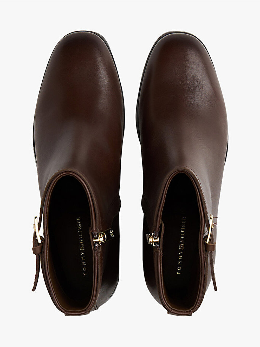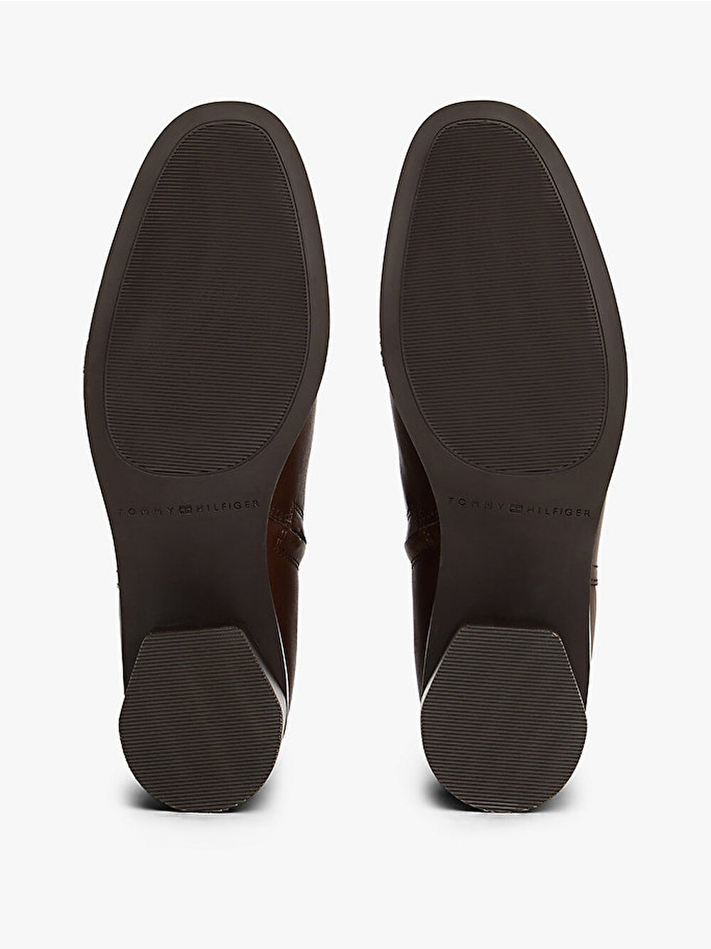 Binici tarzındaki bu bilek üstü bot, TH monogram detaylı parlak tokası ve destekleyici blok topuğuyla öne çıkıyor.