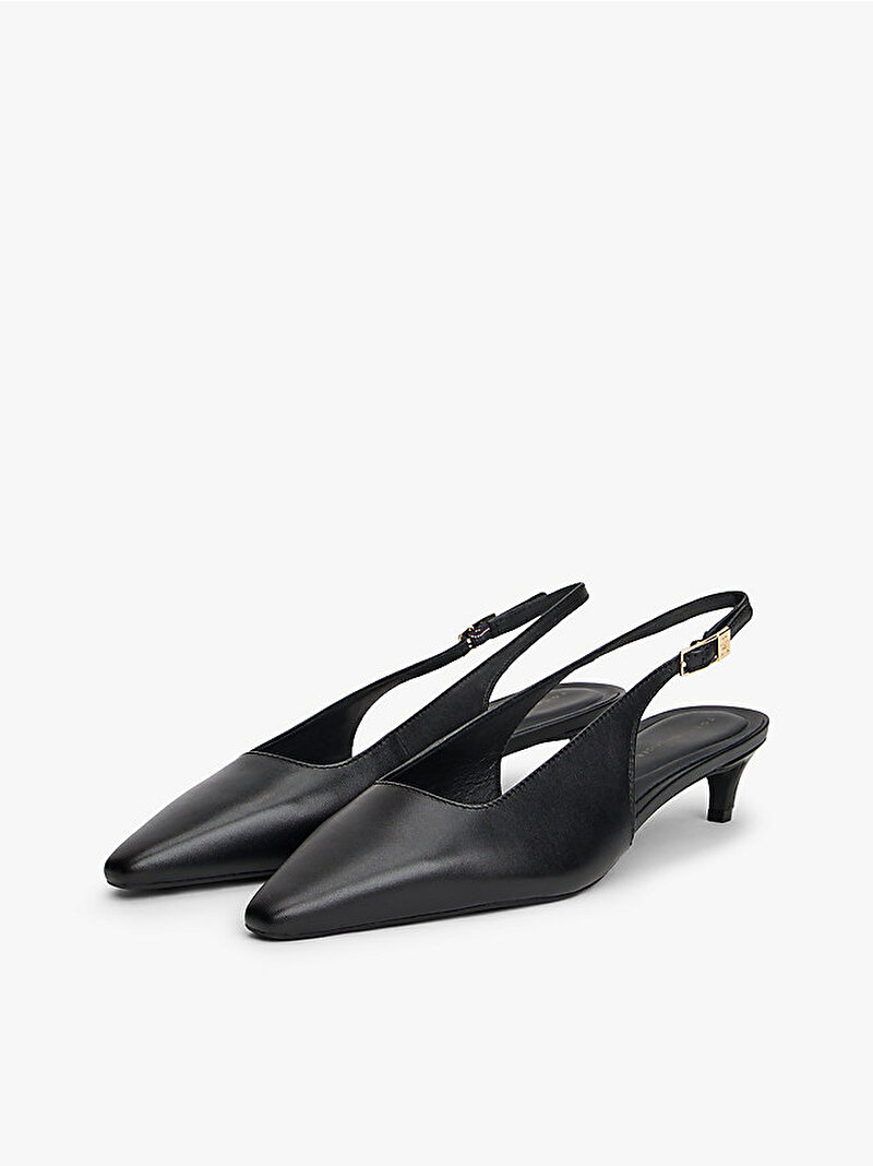 TH monogramlı tokalara sahip şık slingback tasarımlı bu deri kedi topuklu ayakkabı ile parti kombinlerinize zamansız bir çekicilik katın.