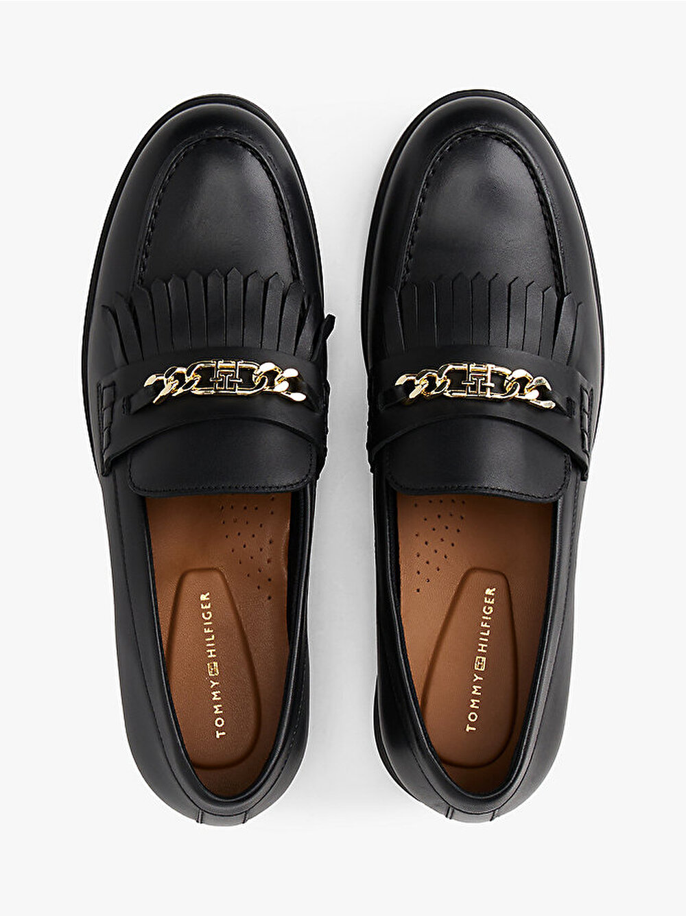 Bu zamansız slip-on loafer ayakkabı, otantik püskül detayı ve lüks TH monogram zincir donanımı ile pürüzsüz deriden yapılmıştır.