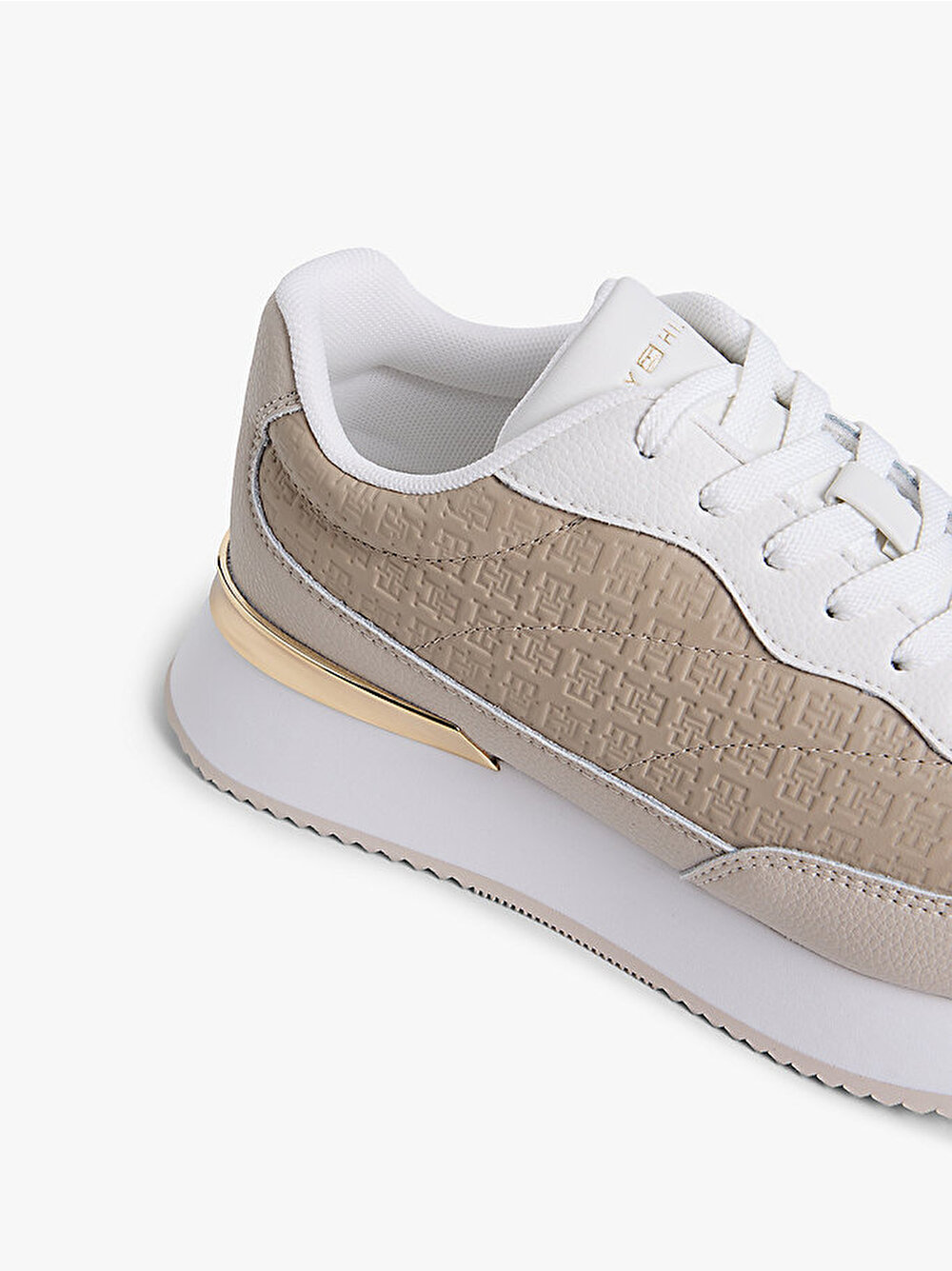 - Bu lüks deri sneaker'lar, klasik koşu stili silüetini, tekrar eden oyma TH monogram deseni ve parlak metalik detaylarla birleştiriyor.