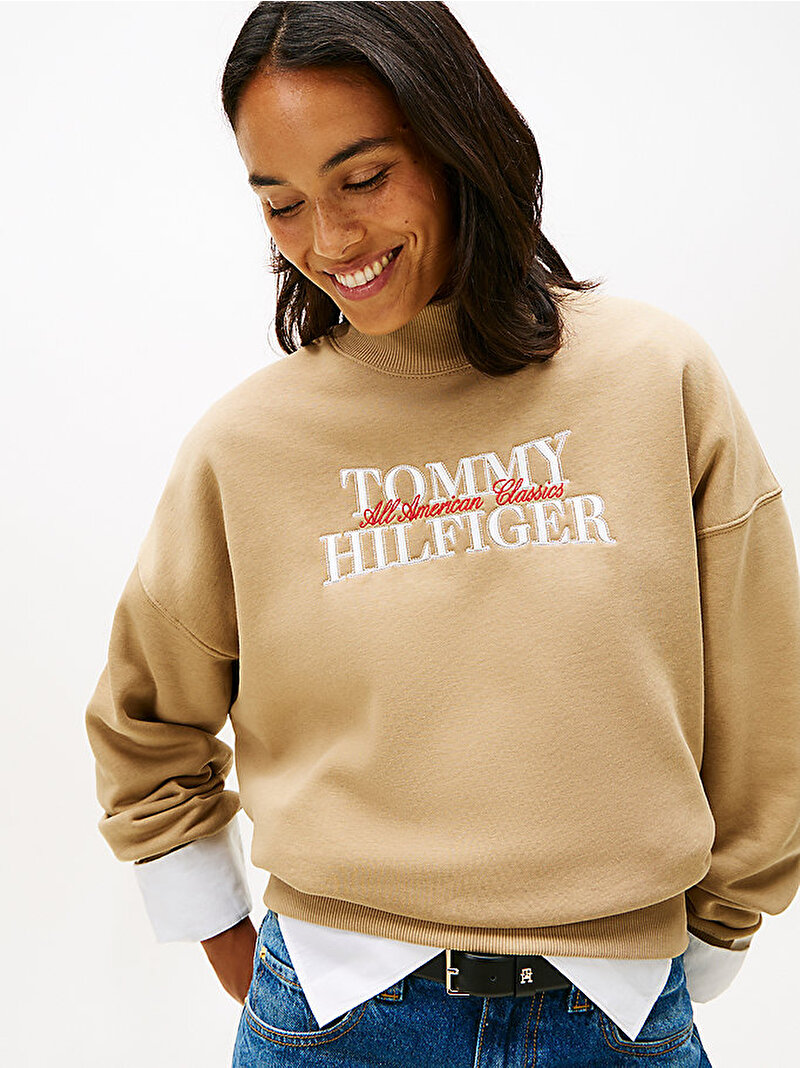 kadın th classic mock neck sweatshirt