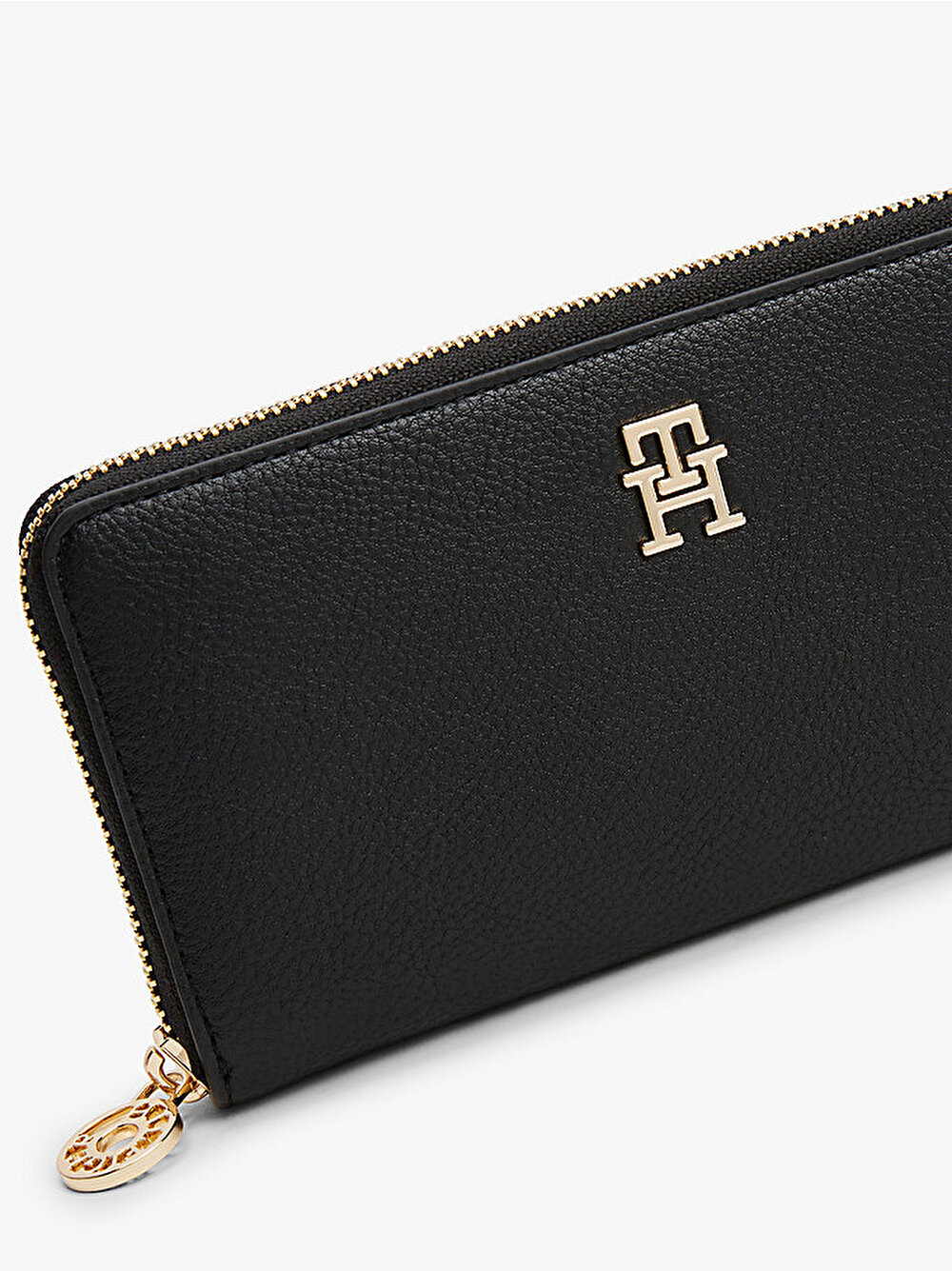 İç hacmi verimli kullanılan bu kompakt fermuarlı cüzdan, ışıltılı TH monogram plakasıyla hem şık hem de işlevsel bir seçenektir