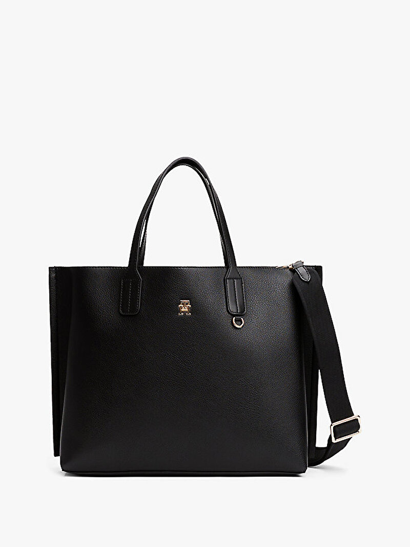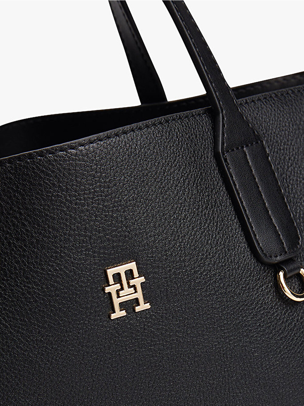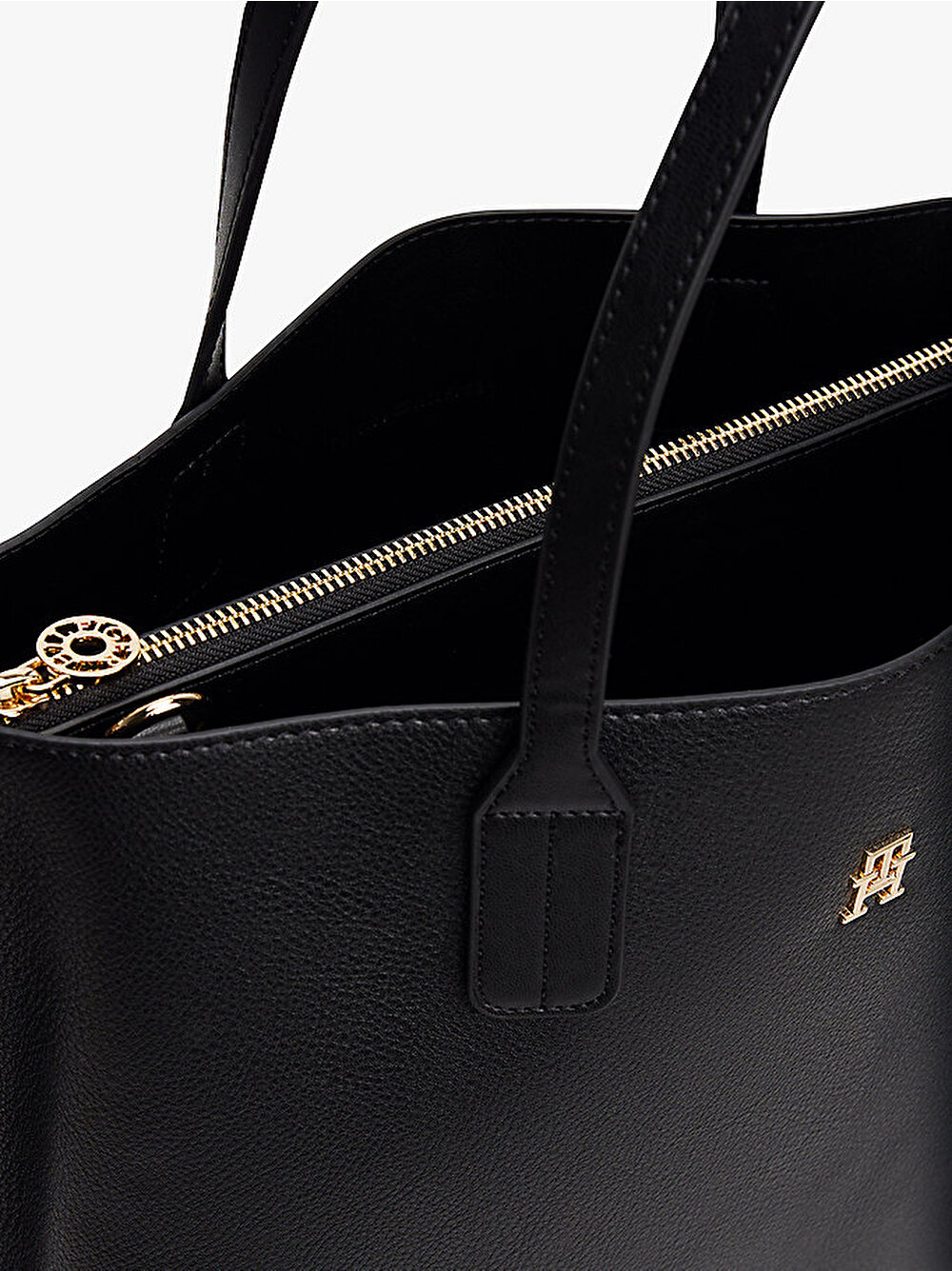 Ön kısmında TH monogram plaka bulunan ve çıkarılabilir çapraz askı seçeneğiyle farklı şekillerde kullanılabilen bu zamansız satchel çanta, hem şık hem de geniş yapısıyla öne çıkıyor.
