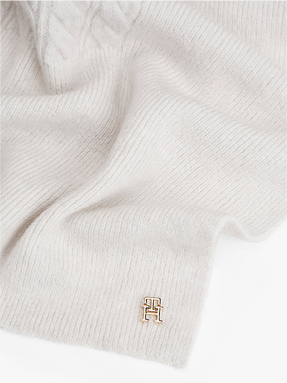 Lüks yün karışımından üretilmiş bu kabarık kablo örgü atkıyla soğuk hava kombinlerinize dokunsal bir şıklık katın.