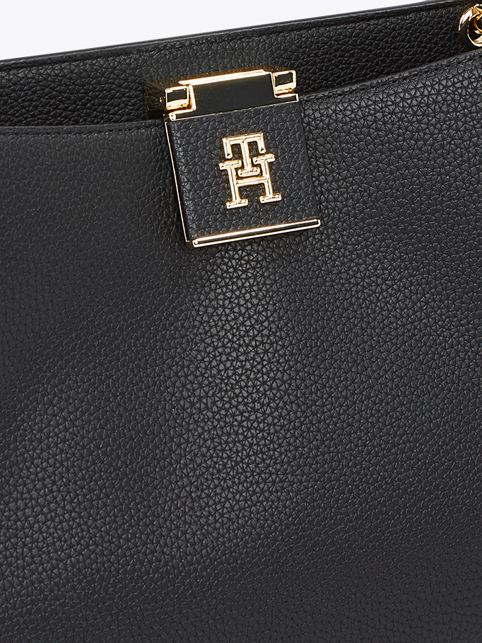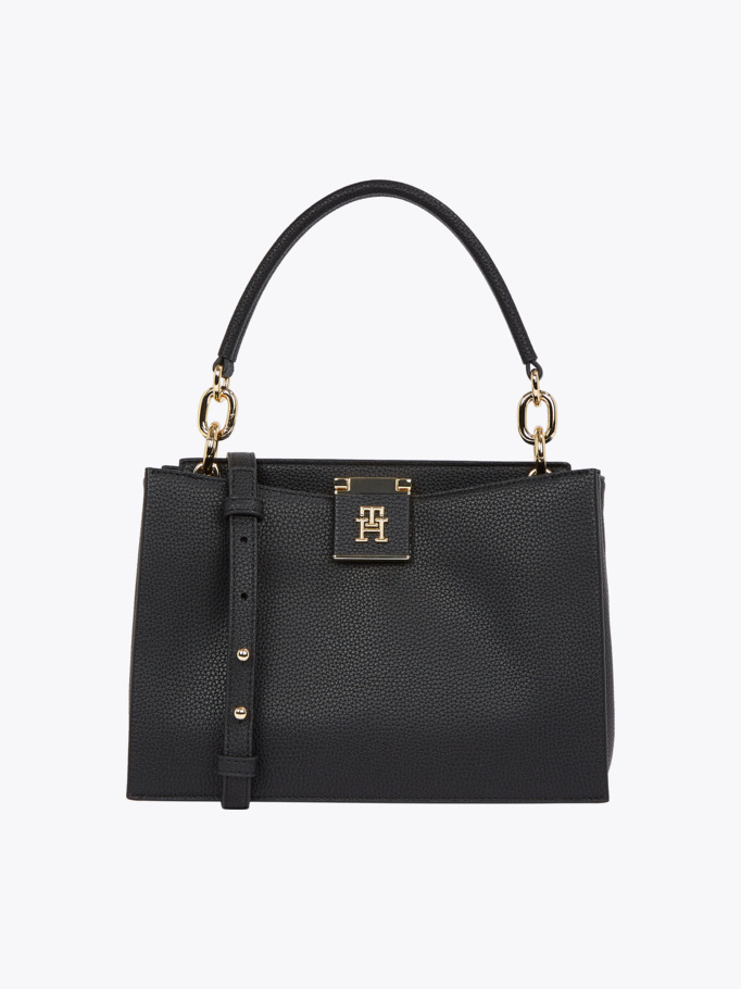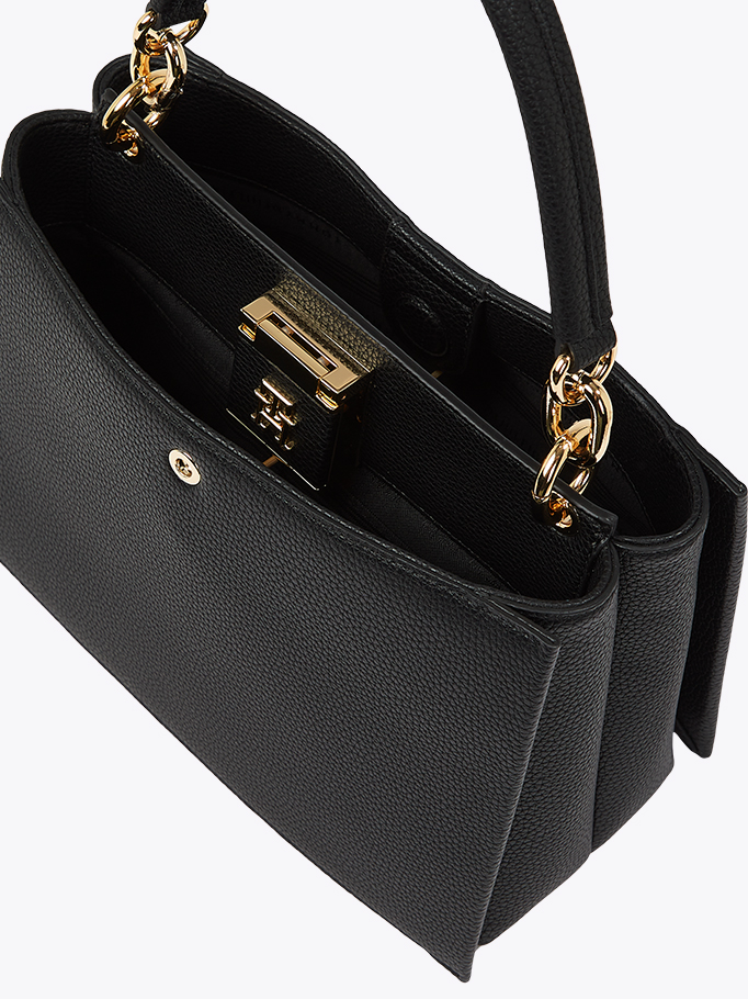 Bu kompakt tote çanta, çıkarılabilir askısı ve TH monogram plaka süslemeli mıknatıslı kapağıyla gündüzden geceye mükemmel bir seçim.