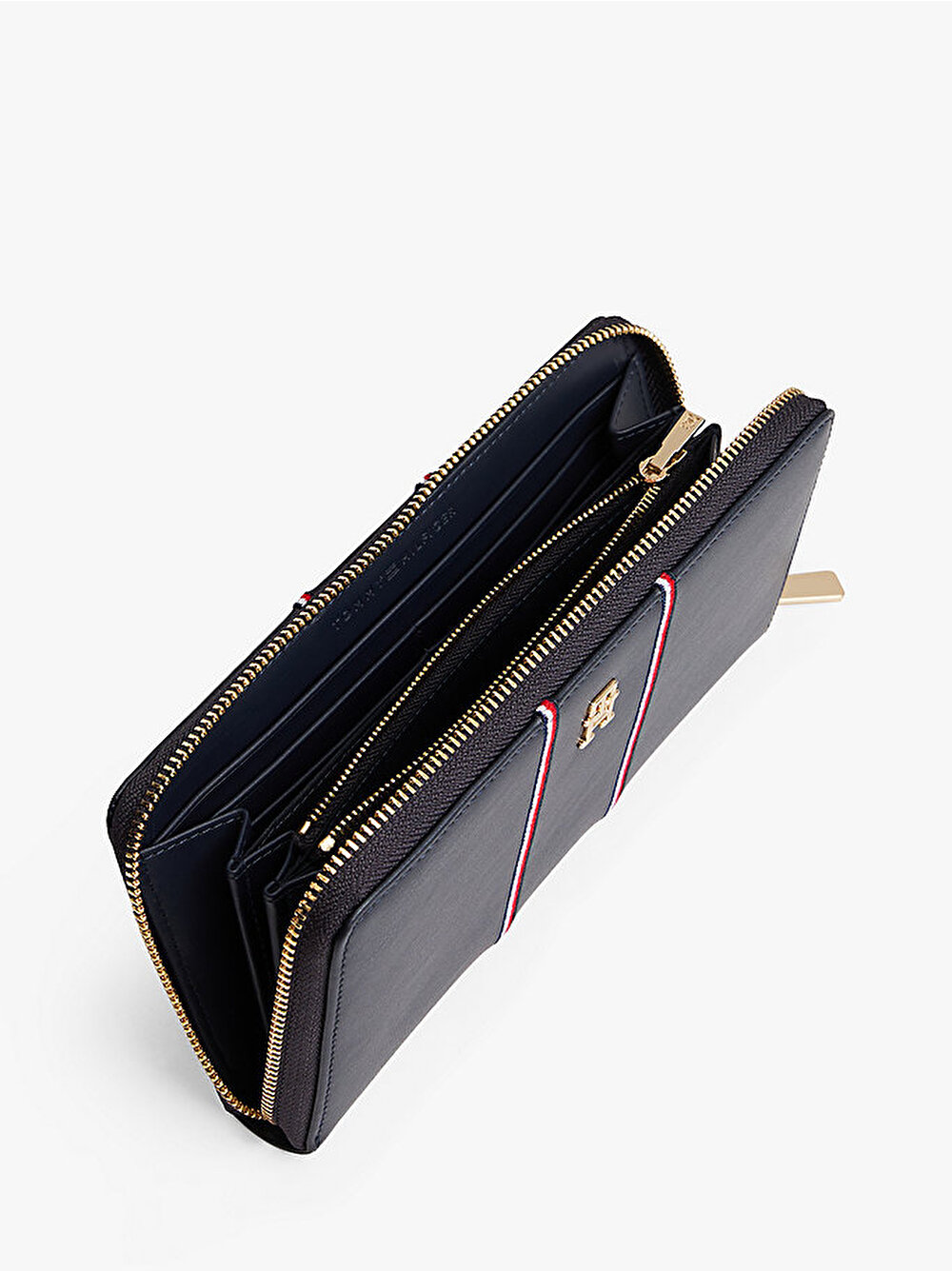 Bu fermuarlı cüzdandaki zarif imza dokunuşları stil sağlarken, çoklu cepler ve yuvalar her şeyin güvende olmasını sağlar.
