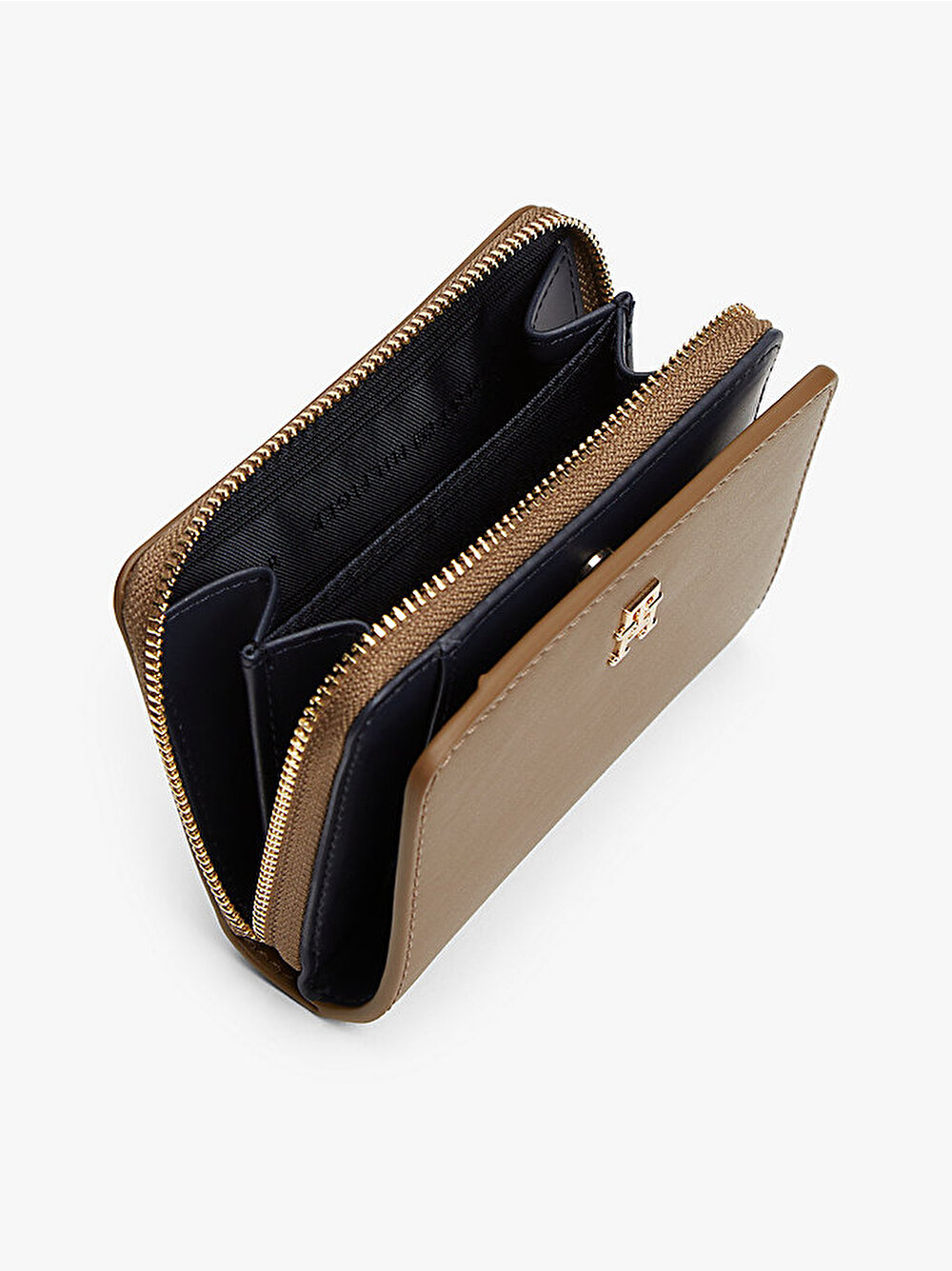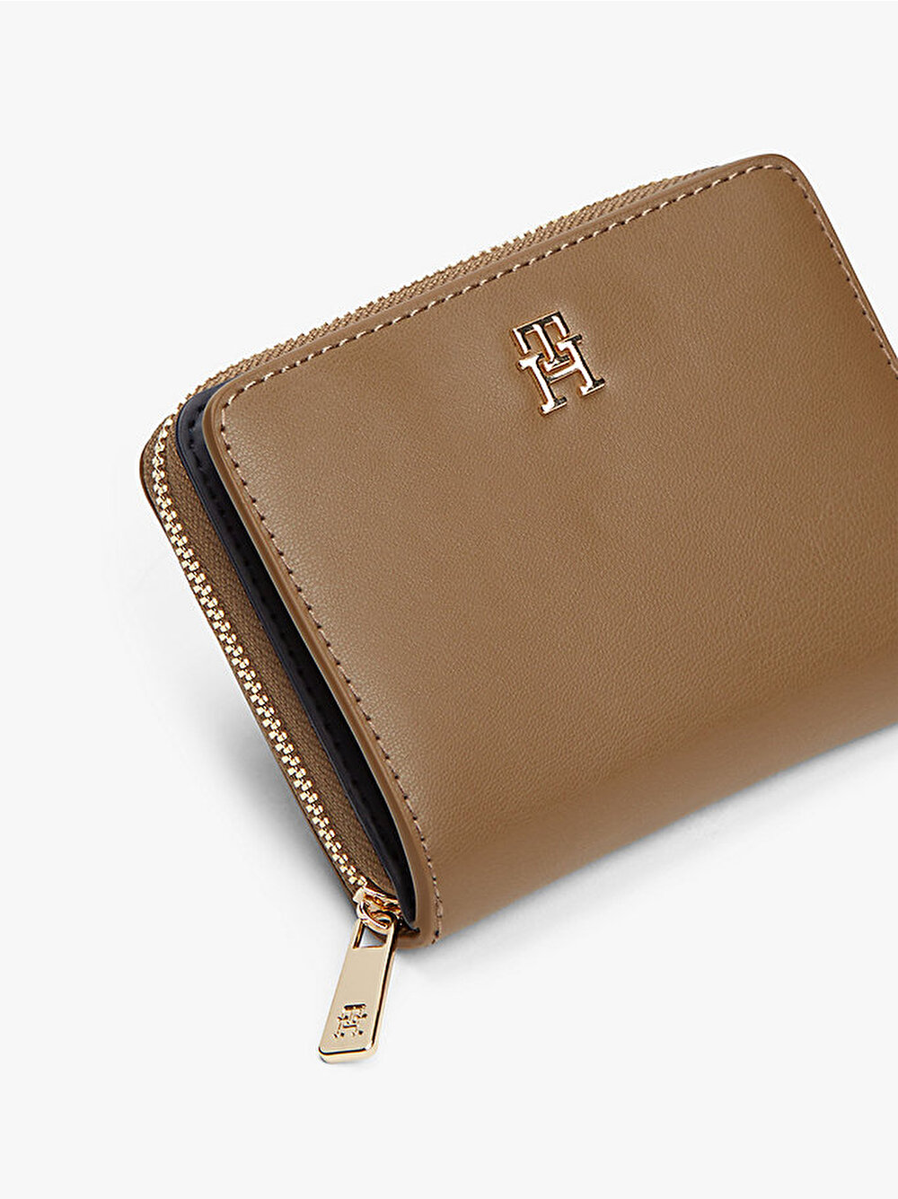 Bu kompakt cüzdan, zamansız TH monogram plakası ve markalı fermuar çekme aparatı ile aksesuar koleksiyonunuza şık bir katkı sağlar.