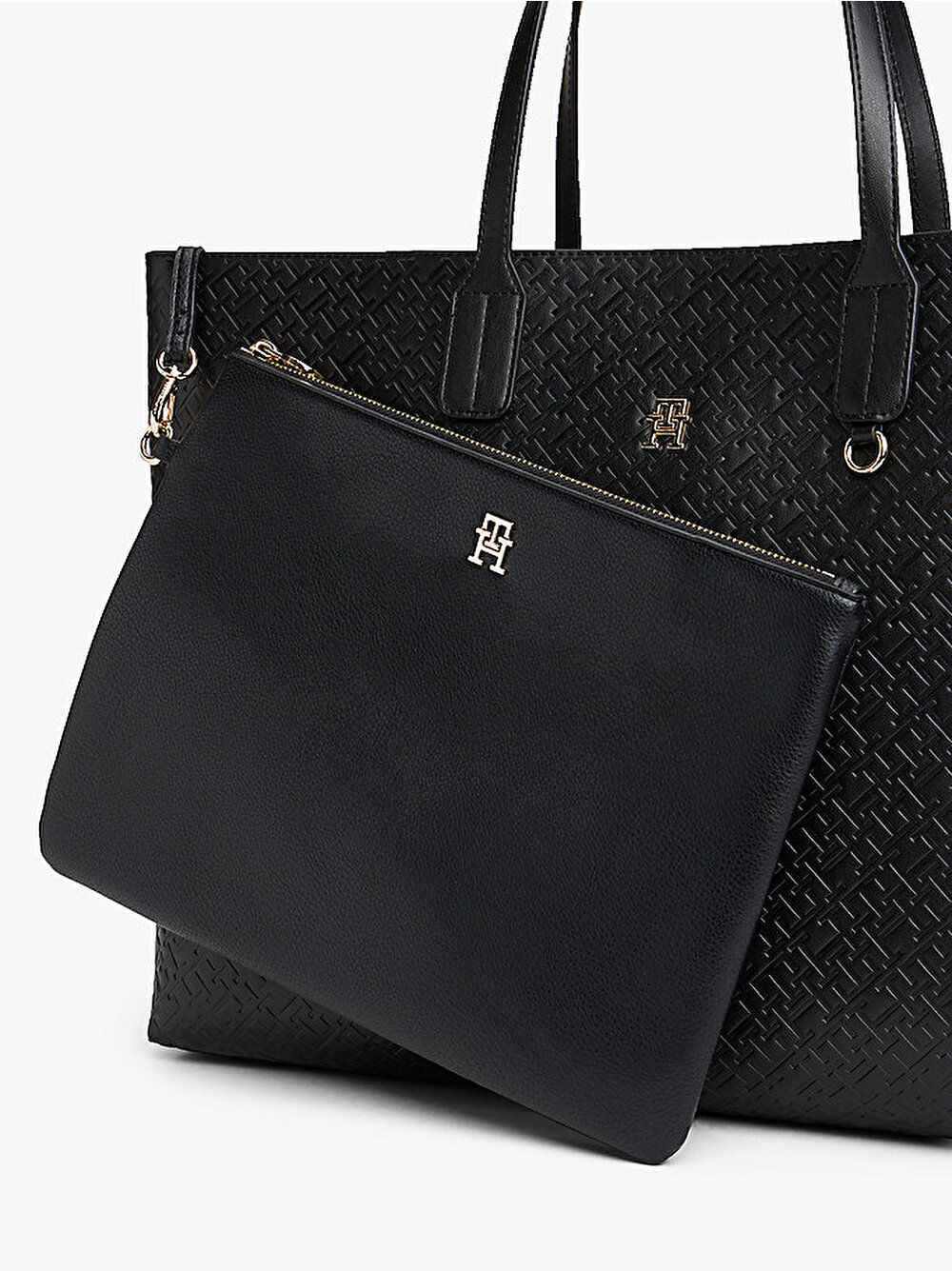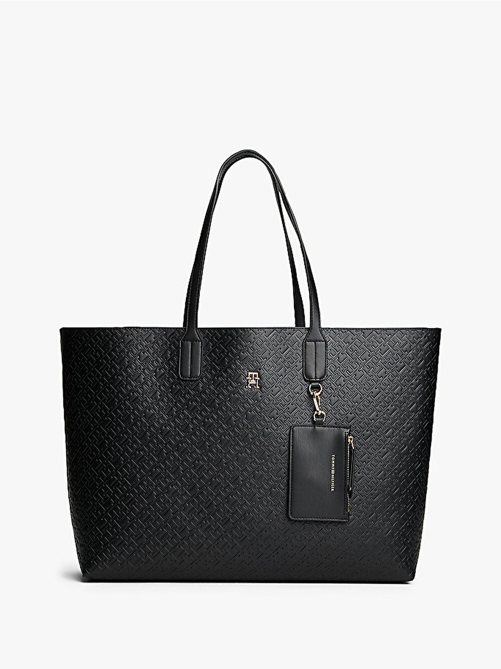 Pratiklik ve stilin mükemmel bir karışımı olan bu TH monogram süslemeli tote çantanın yan tarafında çıkarılabilir bir bozuk para çantası bulunur.