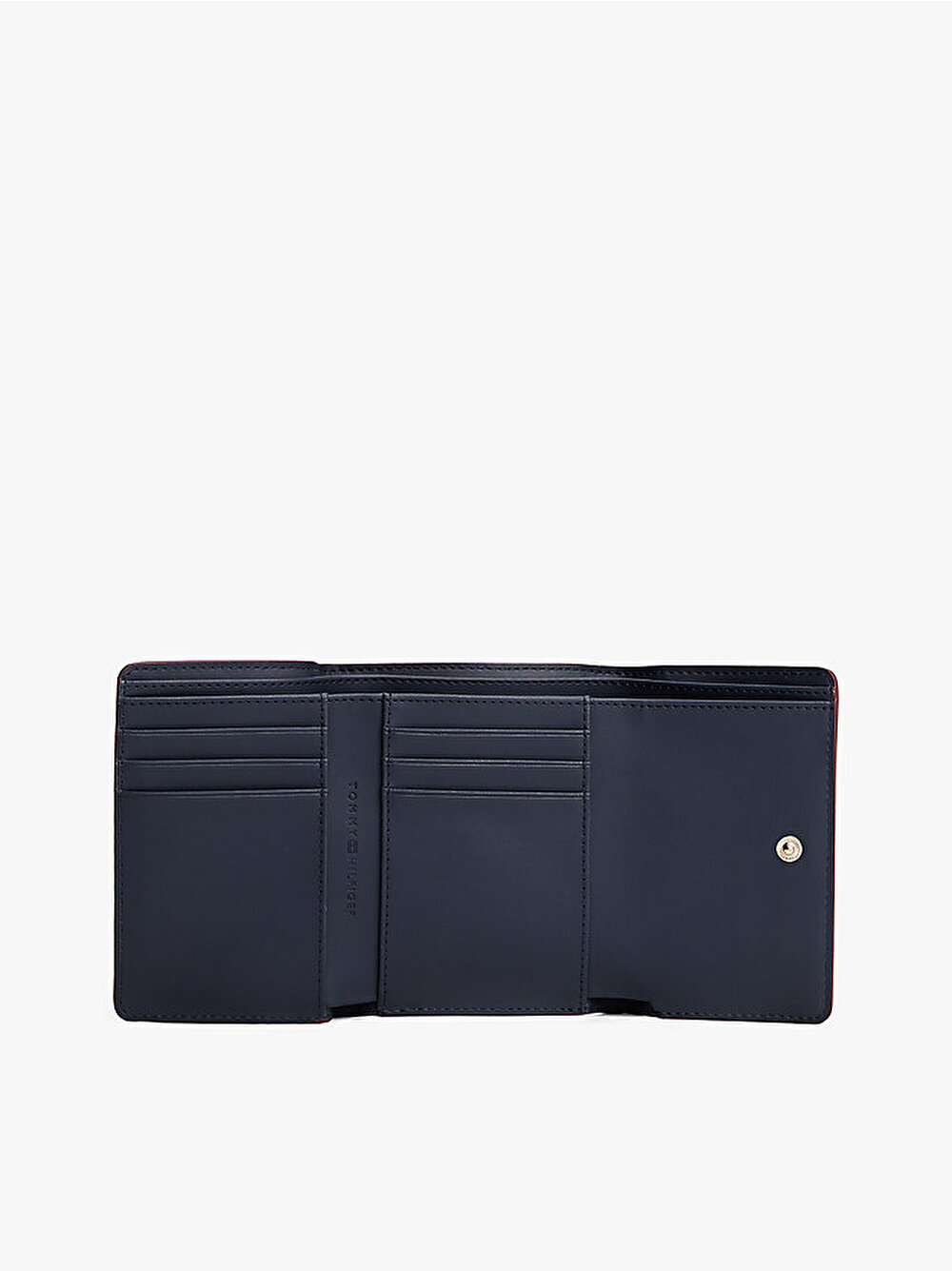 TH monogram plakasıyla tamamlanan pürüzsüz dokulu bu üç katlı cüzdan, kartlarınızı ve nakit paranızı bir arada tutmanın şık bir yoludur.