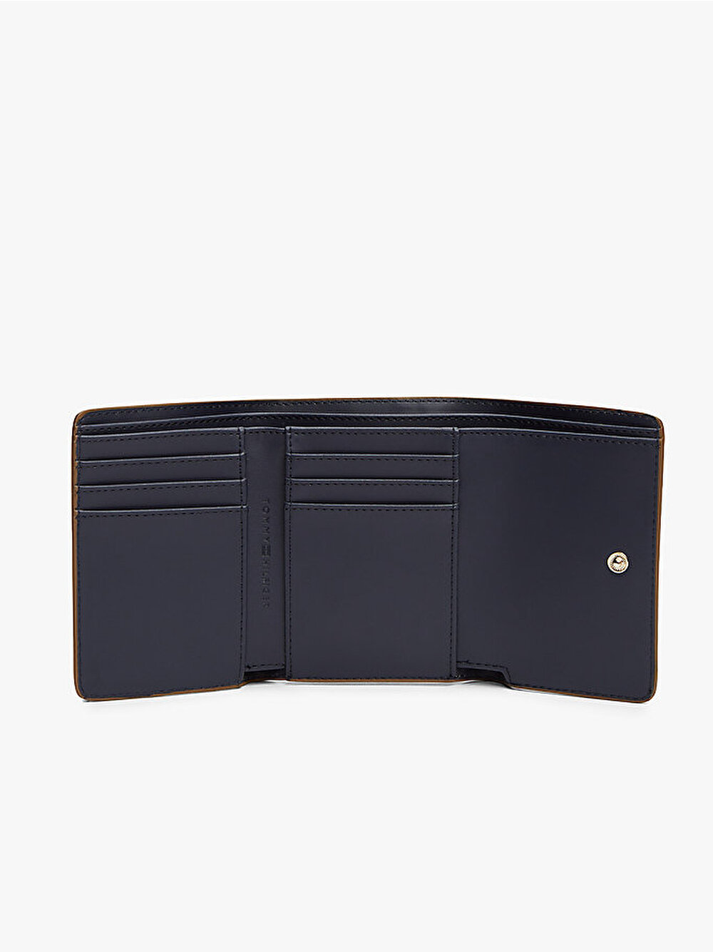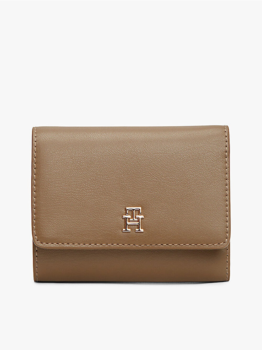 Bu sofistike üç katlı cüzdan, banknotlar, bozuk paralar ve kartlar için bolca alan sunar ve parıldayan TH monogram plaka ile tamamlanmıştır.