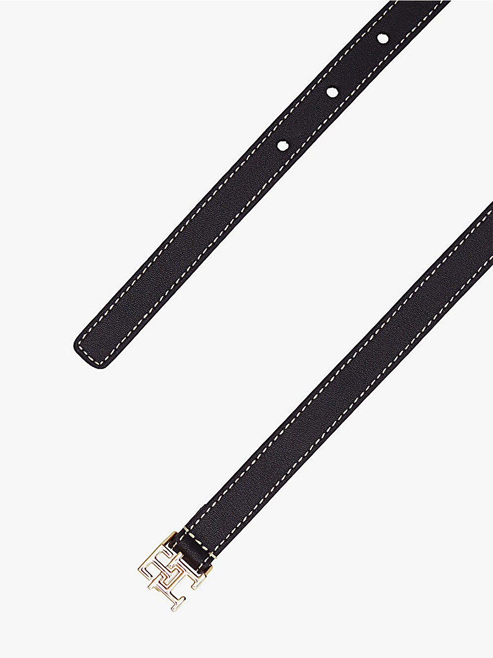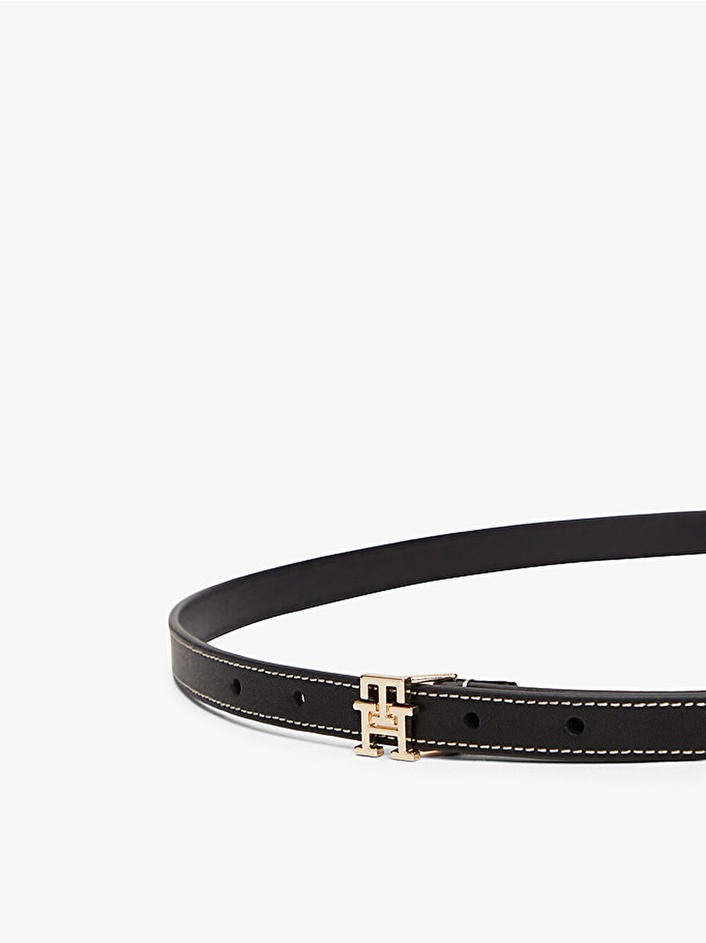 Bu sofistike deri kemer ile kıyafetinize bir zarafet dokunuşu ekleyin, parıldayan bir TH monogram plaka tokası ile süslenmiştir.