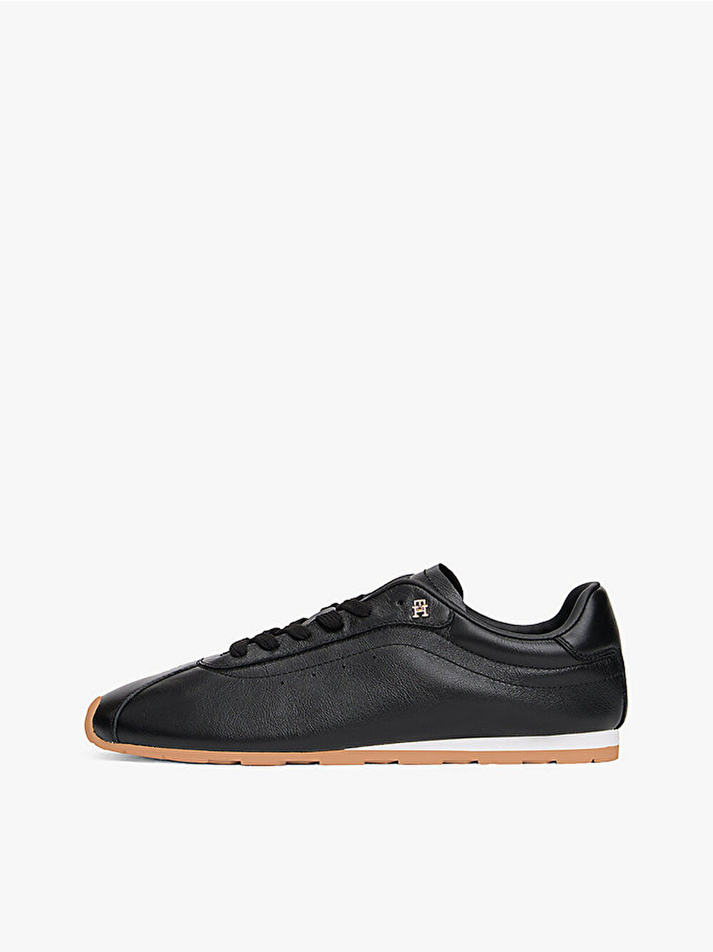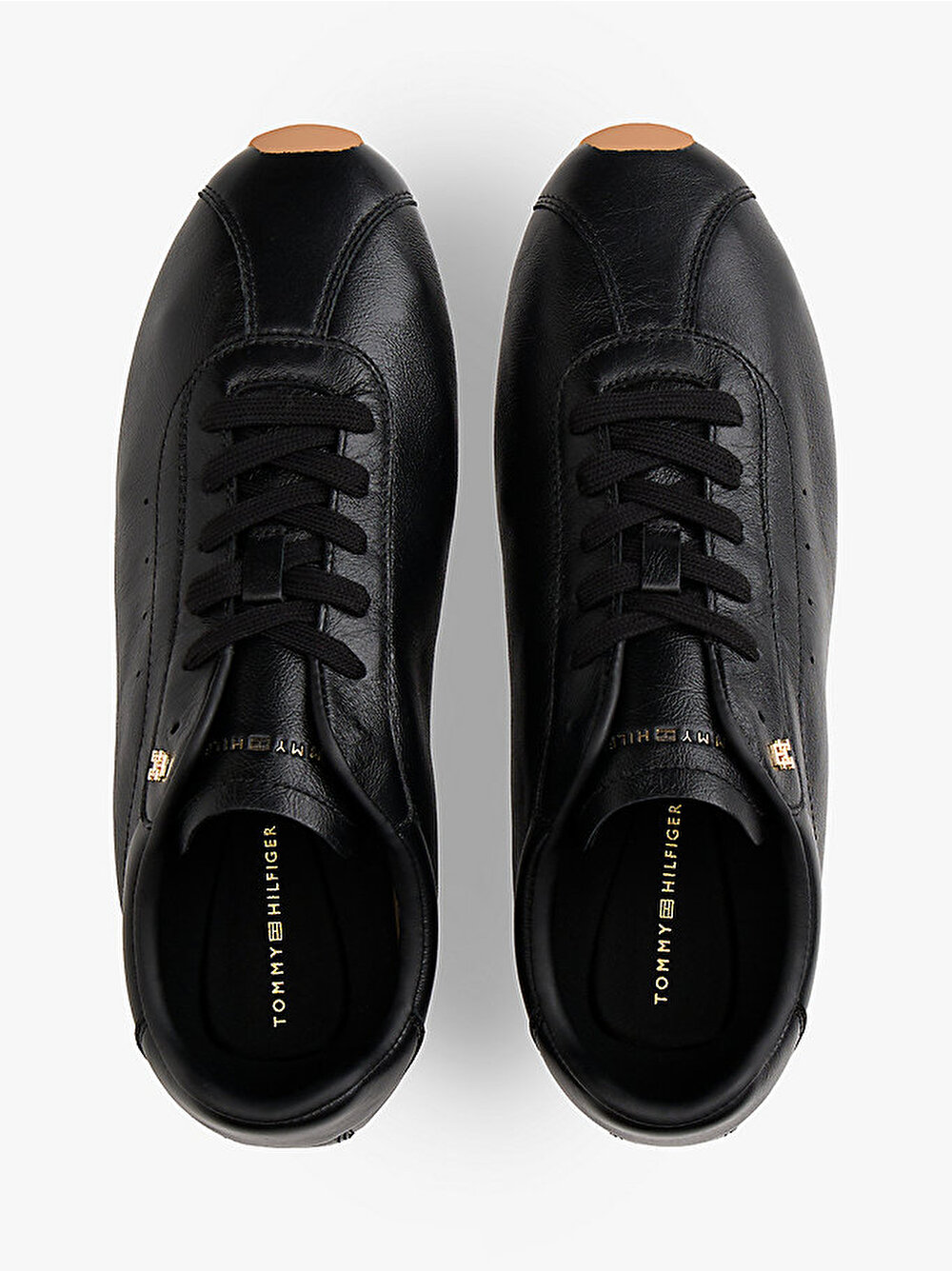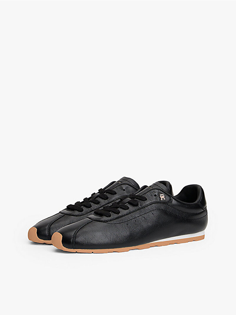 Bu trainers spor ayakkabı, balerin modeli esintili alçak profilli bir siluete sahip olup metalik donanım ve kabartma logo detaylarıyla lüks bir doku kazanıyor.