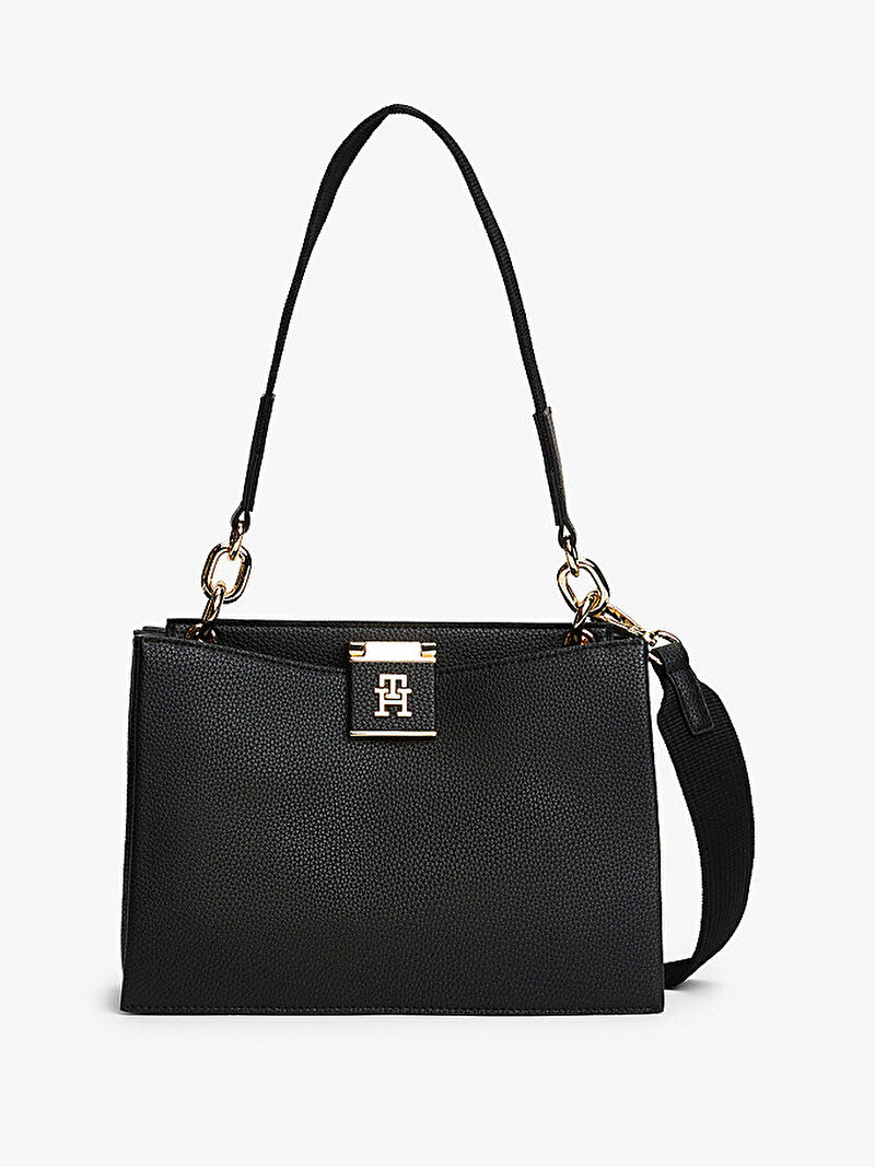 Bu satchel el çantası, hem gündüz hem gece kombinlerine zarif bir tamamlayıcıdır; elde taşımaya uygun sapı ve çapraz askısı sayesinde farklı taşıma seçenekleri sunar.