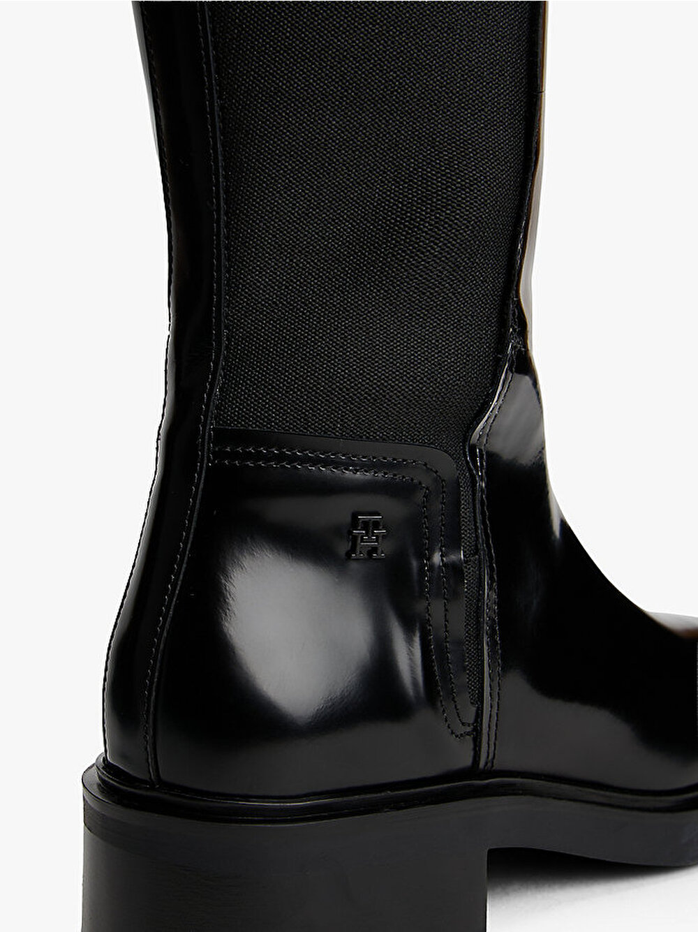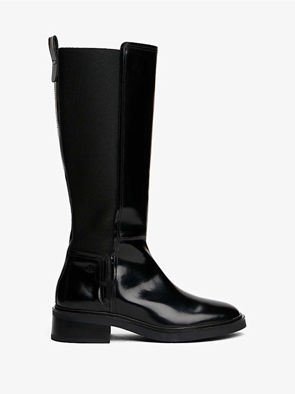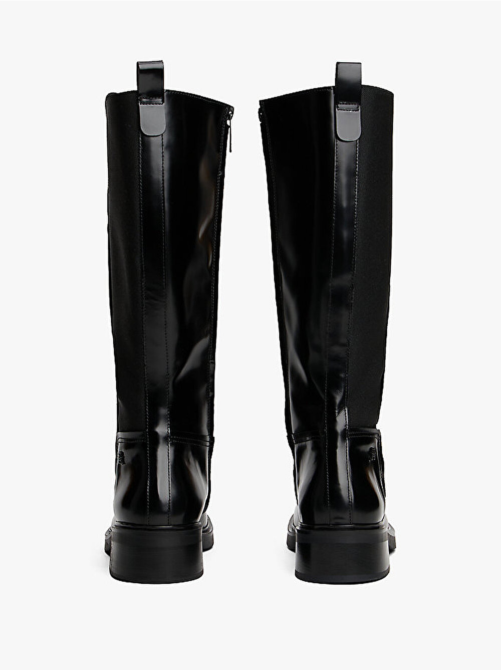 Göze çarpmayan imza detayı ve çevreleyen panel görünümüyle bu binici stilinden ilham alan deri botlar ile görünümünüzü sofistike bir şekilde tamamlayın.