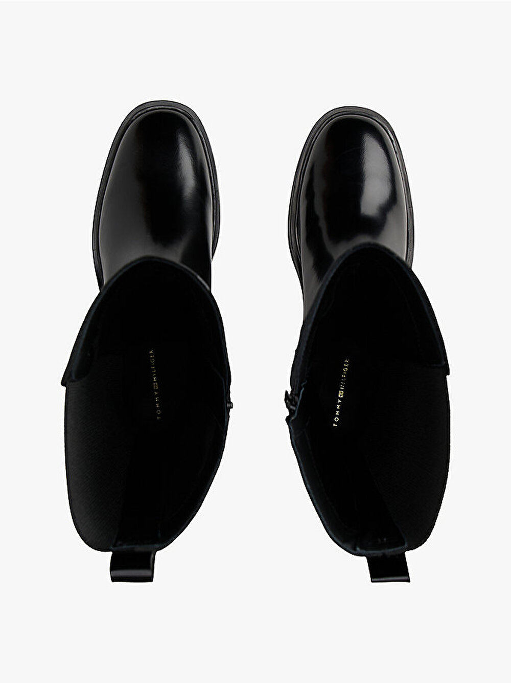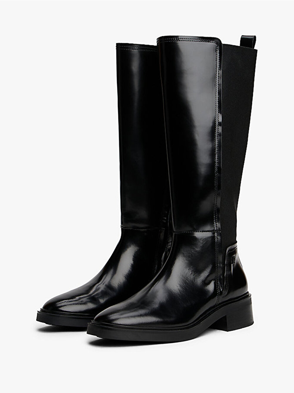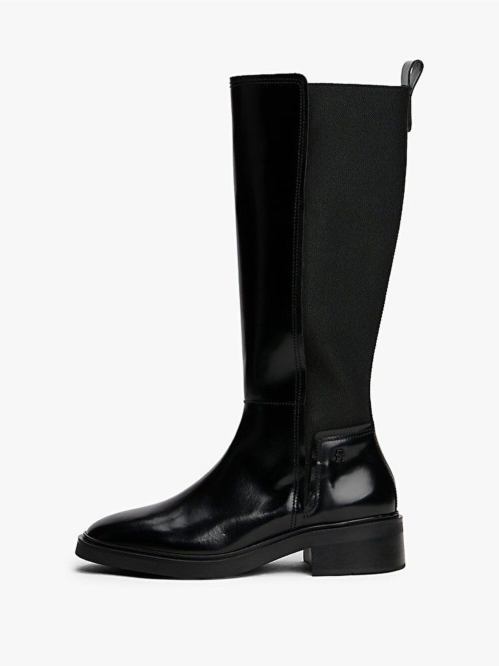 Göze çarpmayan imza detayı ve çevreleyen panel görünümüyle bu binici stilinden ilham alan deri botlar ile görünümünüzü sofistike bir şekilde tamamlayın.