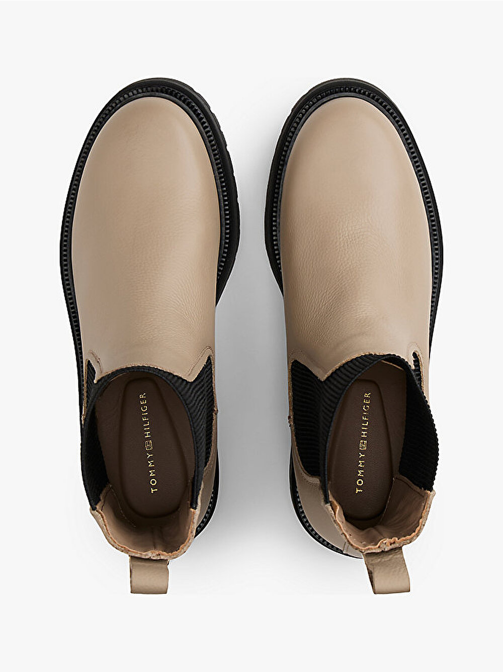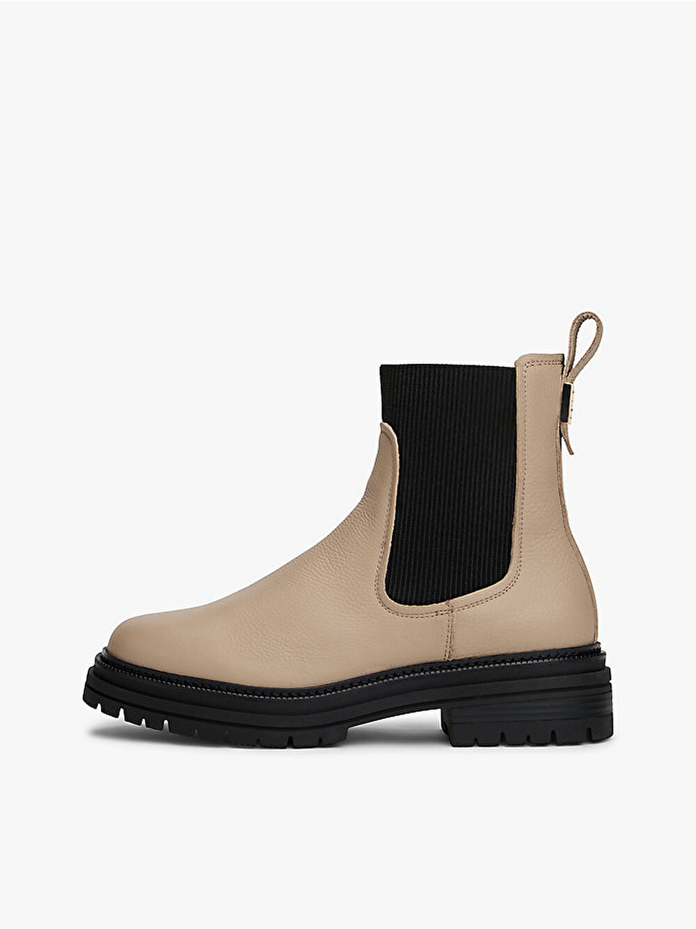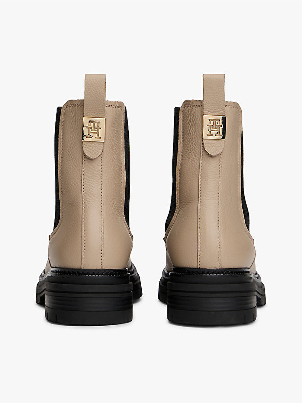 Tanecikli deri üst yüzeyi ve TH monogram plakası ile bu Chelsea bot, kombininize sofistike bir hava katar.