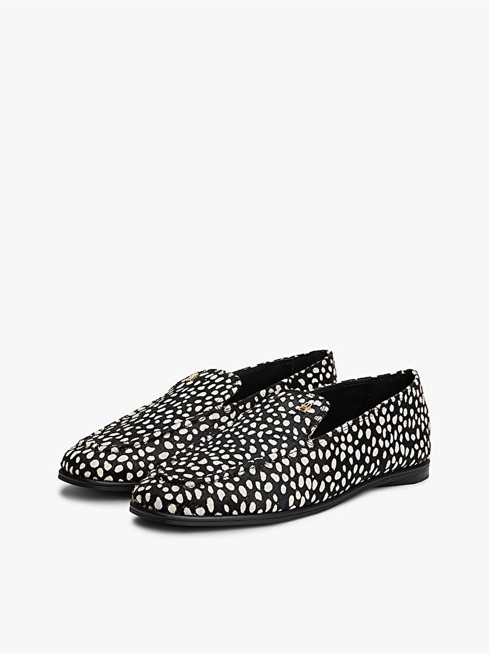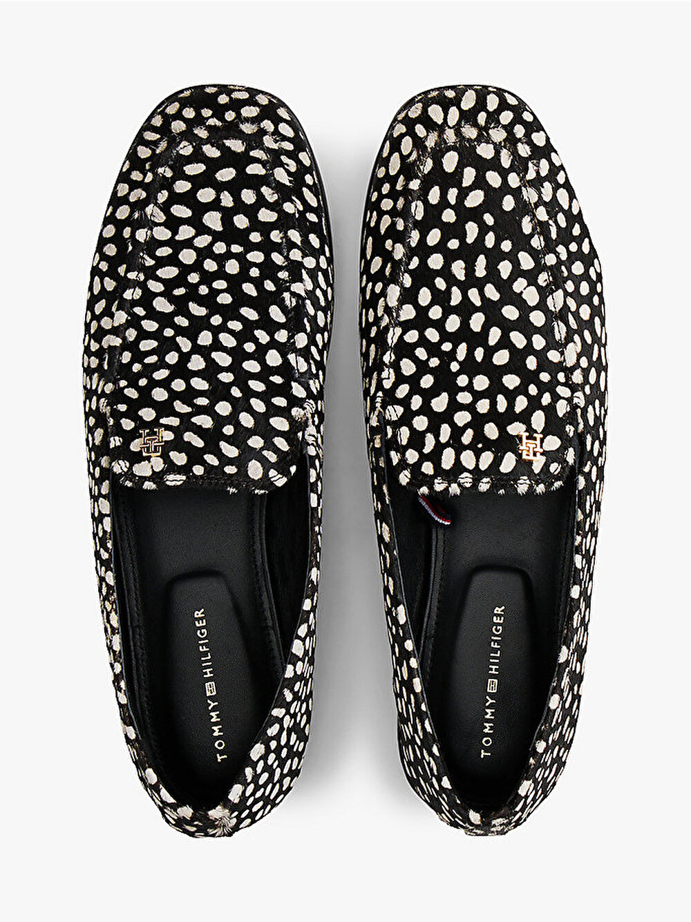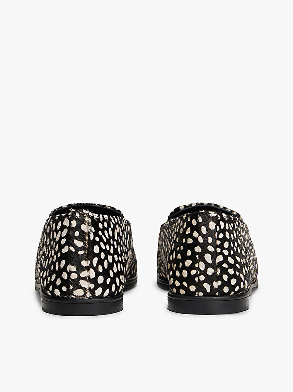 Bu loafer ayakkabı, dana kürkünden üretilmiş ve göz alıcı kar leoparı deseniyle tamamlanmış olup, formal görünümlerinize çarpıcı bir son dokunuş katar.