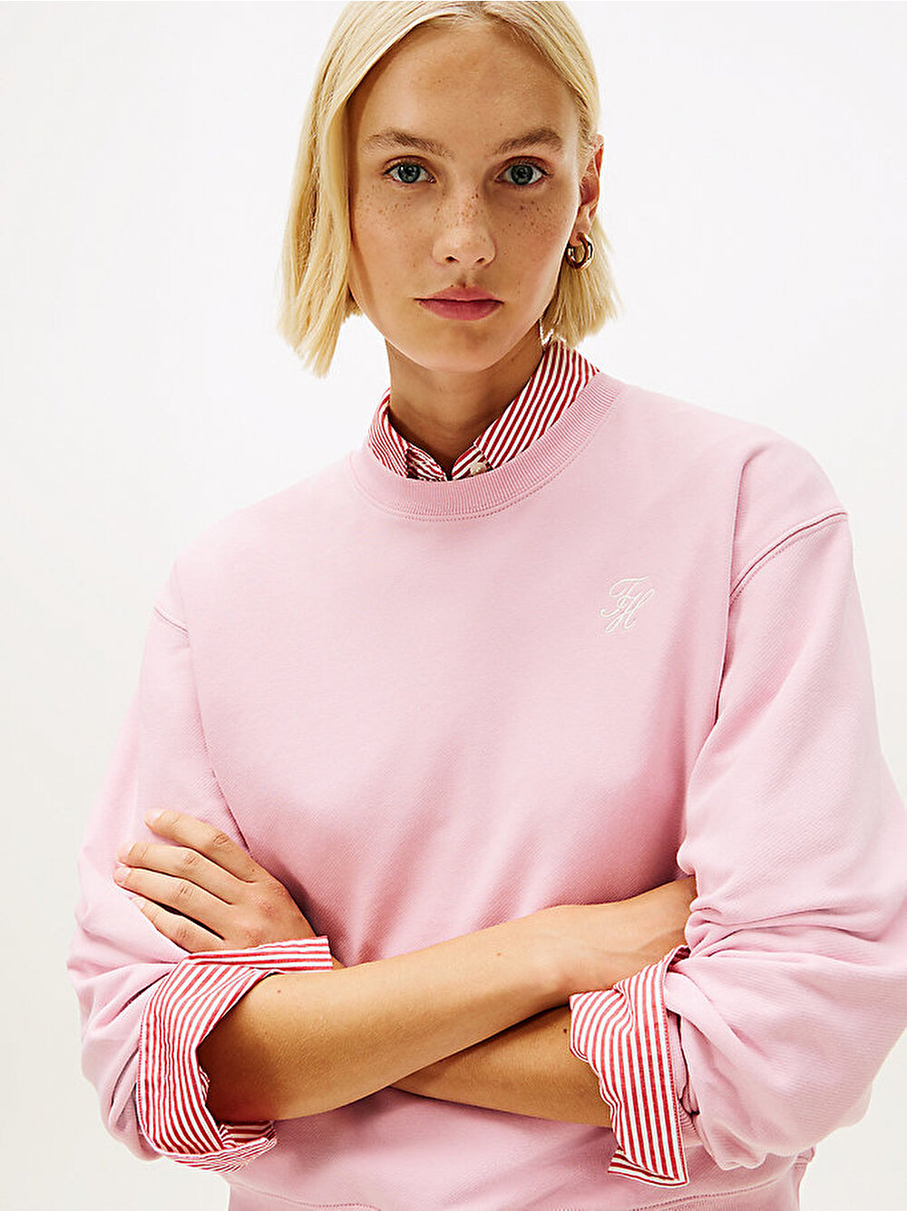 Bu çok yönlü sweatshirt, rahat bir his vermek için düşük omuzlu klasik bir şekle sahiptir ve script logo nakışı detaylara incelik katar.