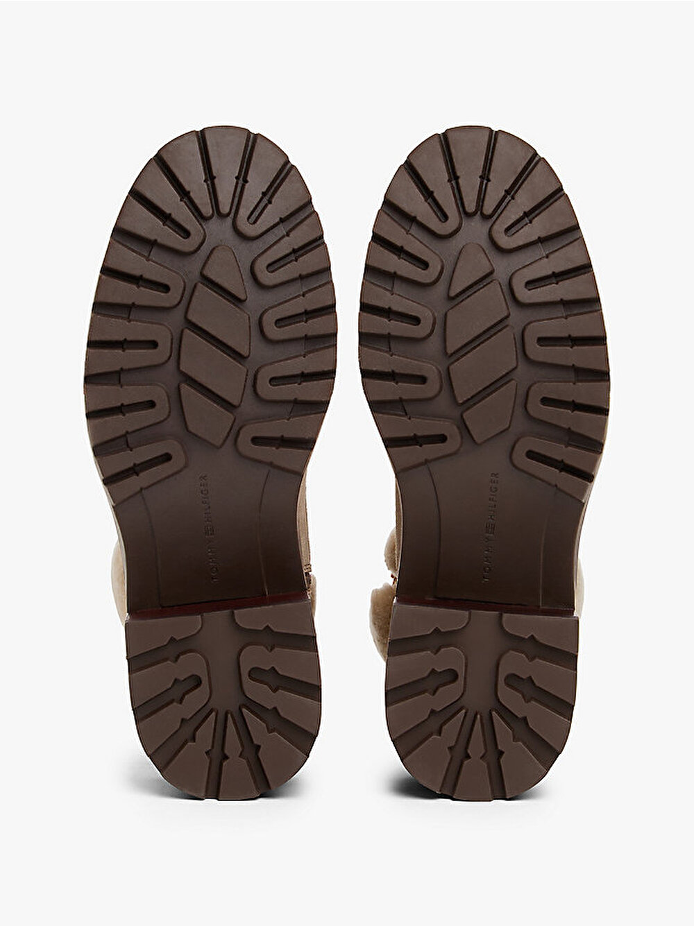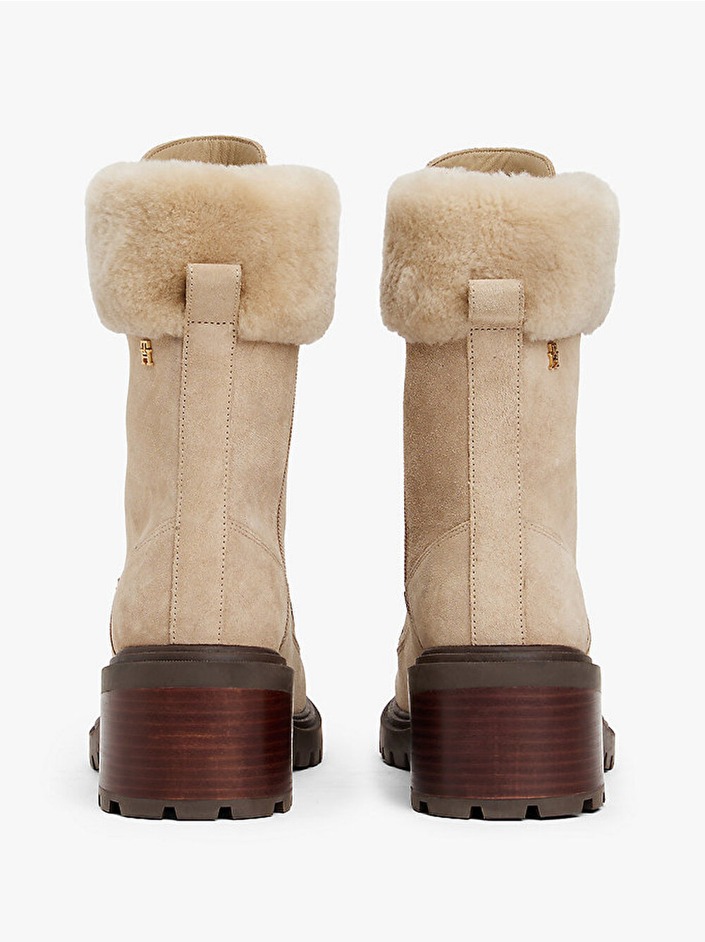 Klasik doğa yürüyüşü stillerinden ilham alan bu blok topuklu bağcıklı bot, polar astarlı birinci sınıf süetten üretilmiştir.