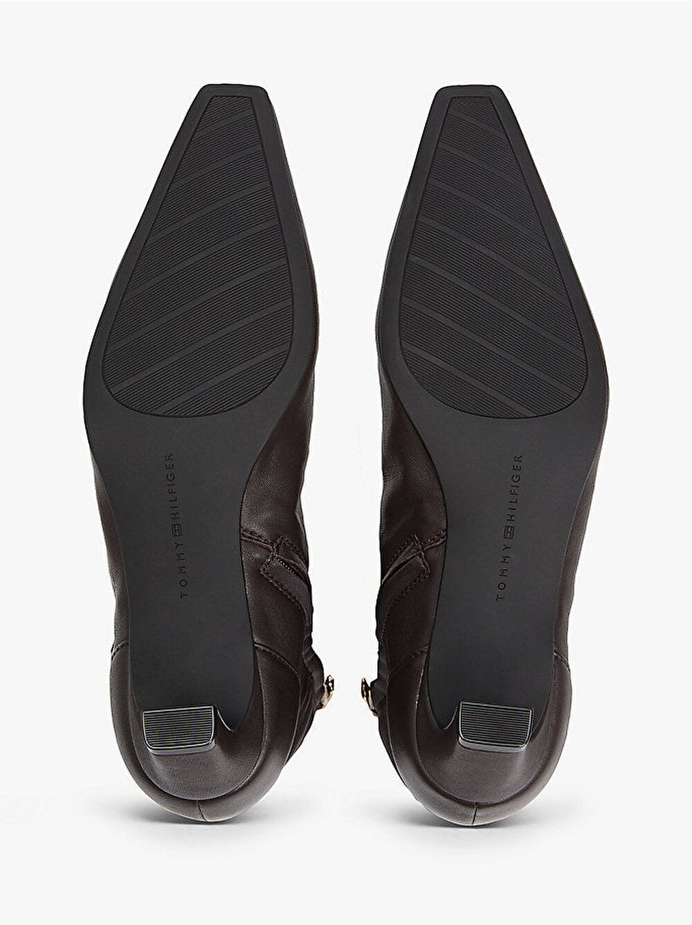Yumuşak deriden üretilen, metalik marka logosu ile çok yönlü bir siluete sahip bu orta boy bot, parti kıyafetlerinize zamansız bir katkı sağlar.