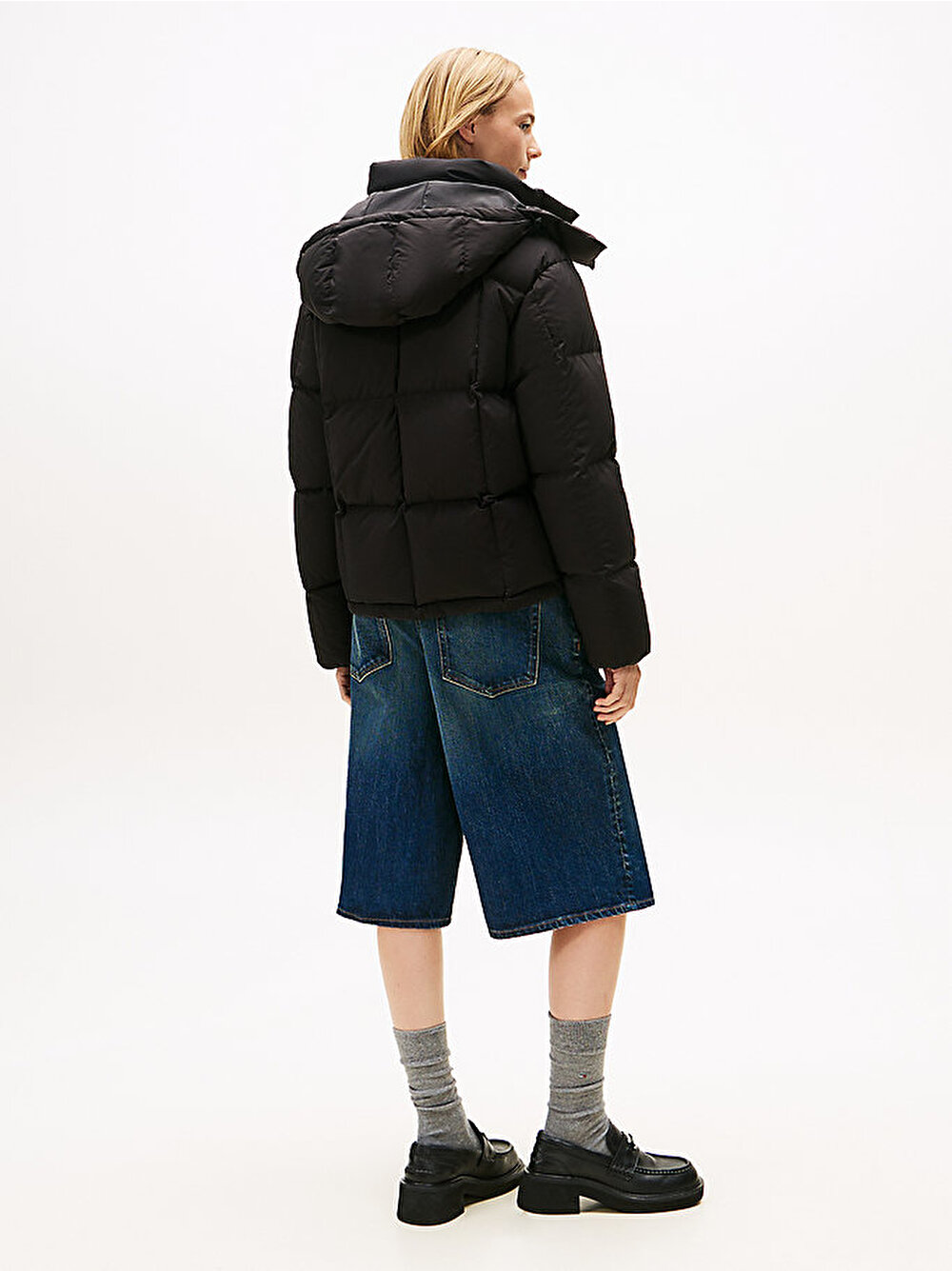 Rahat huni yakalı ve pratik çıkarılabilir kapüşonlu bu rahat şişme montla soğuk günleri kucaklayın.