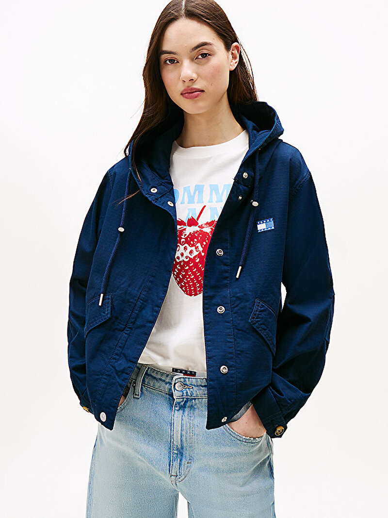 Rahat kesimi, bol ayarlanabilir kapüşonu ve kullanışlı ön cepleriyle bu ceket, gündelik giyim için mükemmel bir tamamlayıcıdır.