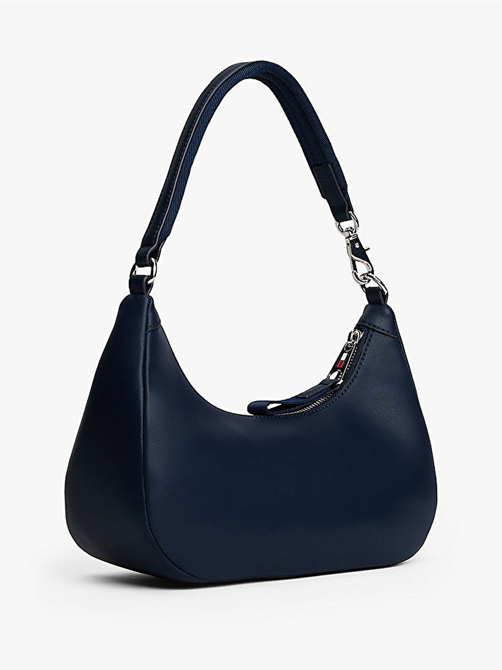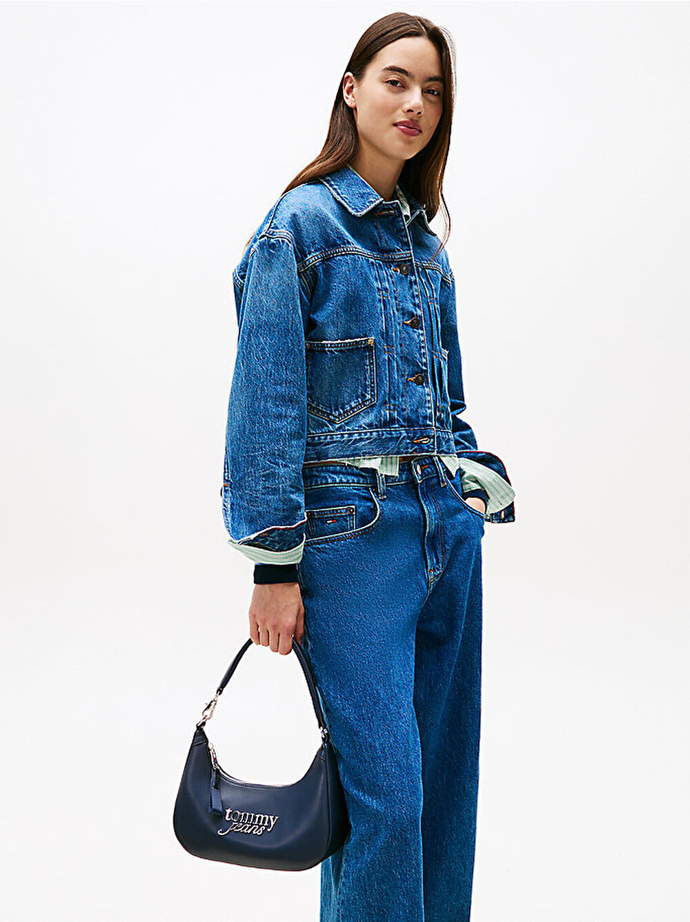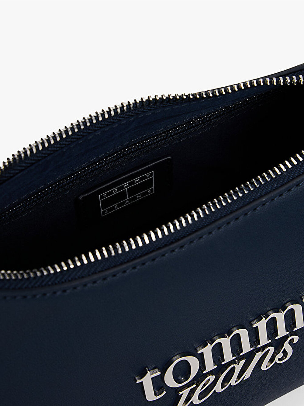Bu omuz çantası zarif, pürüzsüz bir yüzeye sahiptir ve önündeki metal serif yazı logosuyla üst düzeye taşınıyor.