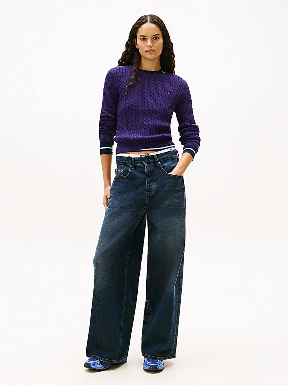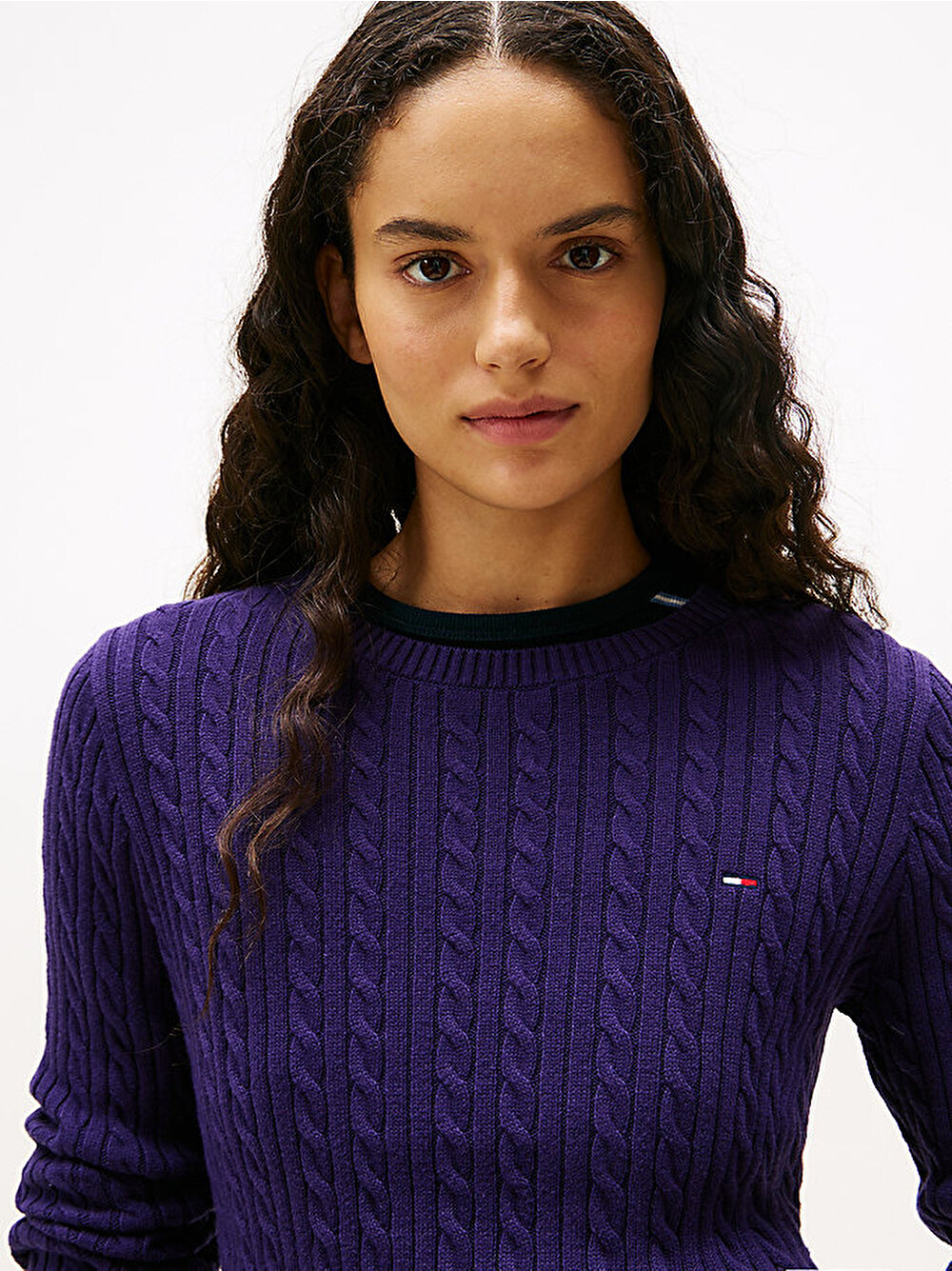 Bu kazak, saf penye pamuktan üretilmiş dokulu kablo örgü tasarımıyla triko koleksiyonunuza zamansız bir katkı sağlar.