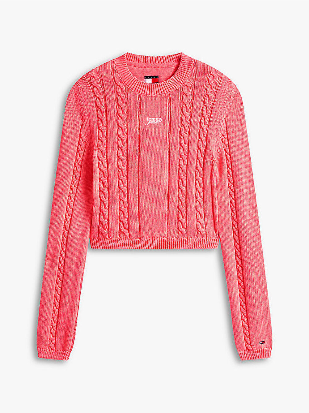 - Bu kazak; vücuda oturan slim formu ve zamansız kablo örgü tasarımını, lüks serif el yazısı logo nakışıyla birleştiriyor.