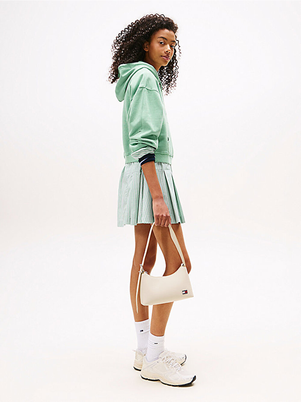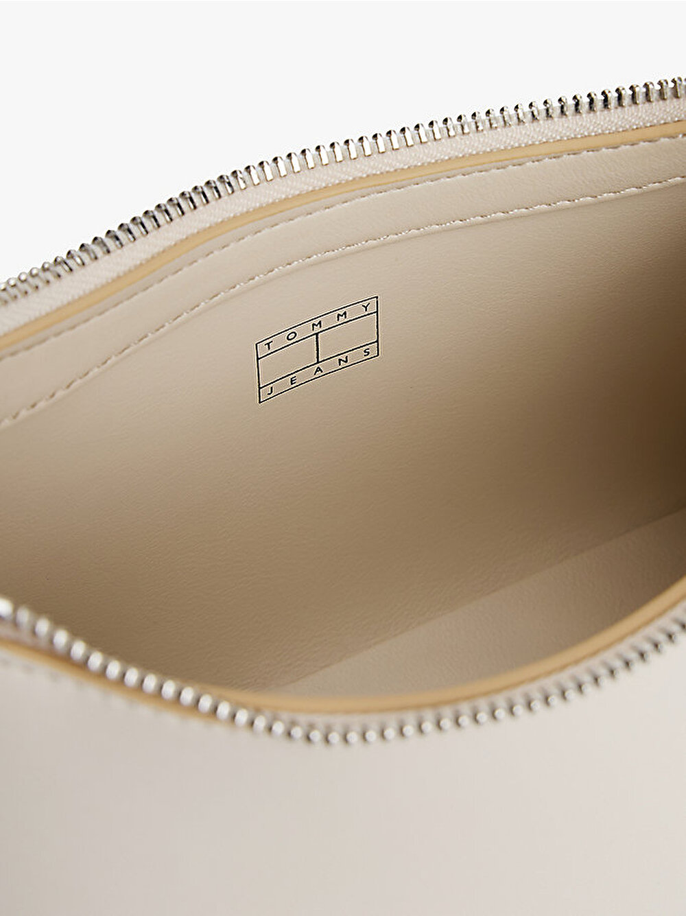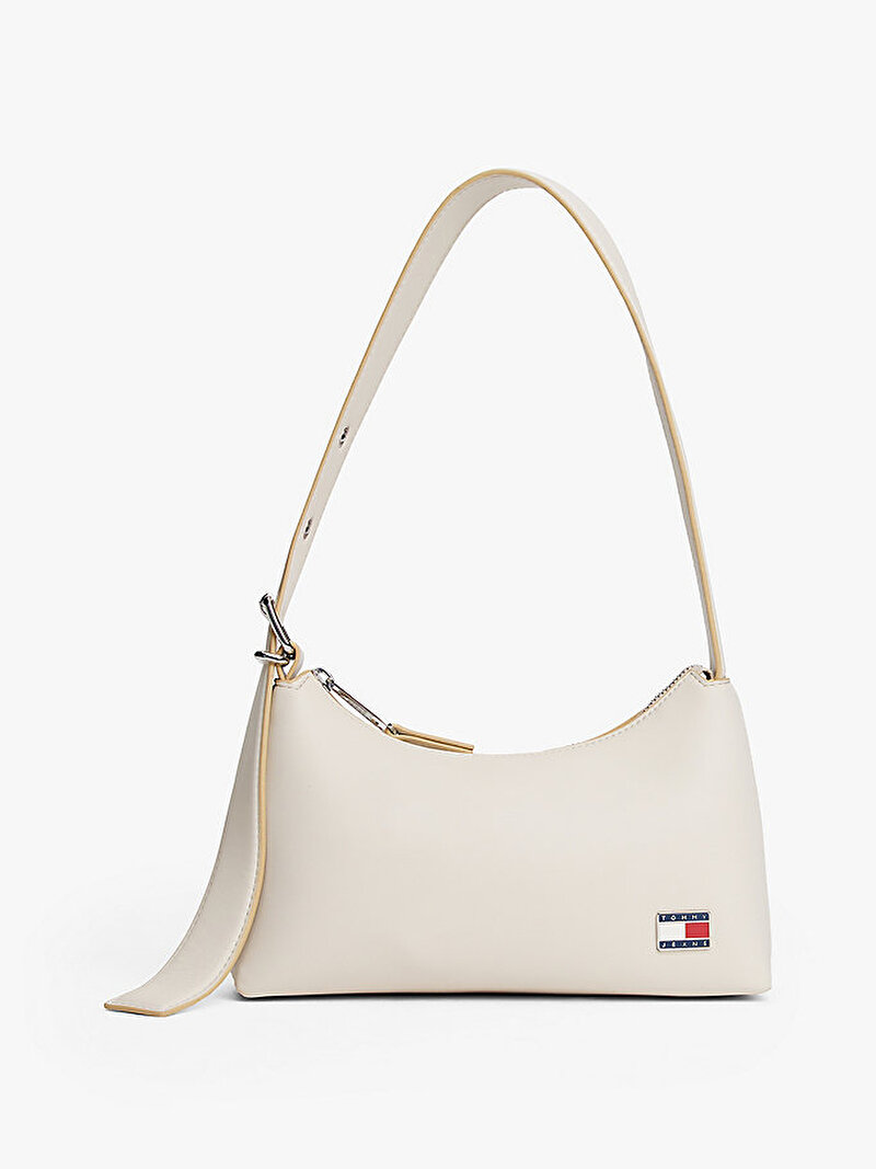 Zarif, pürüzsüz bir yüzeye ve lüks Tommy rozetli plakaya sahip bu omuz çantası ile kombinlerinize zamansız bir görünüm kazandırın.