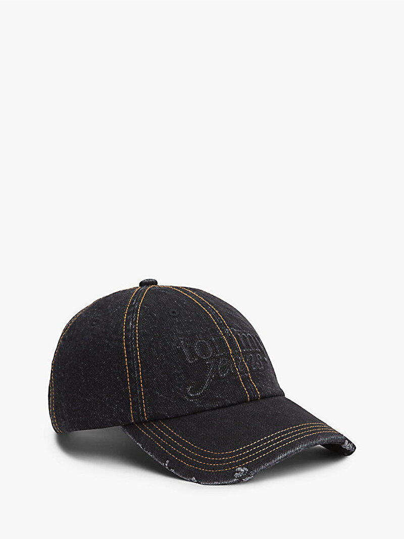 Tamamında yer alan kontrast üst dikişler ve ön kısmındaki kabartma logoyla öne çıkan bu denim beyzbol şapkayla tarzınızı vurgulayın.
