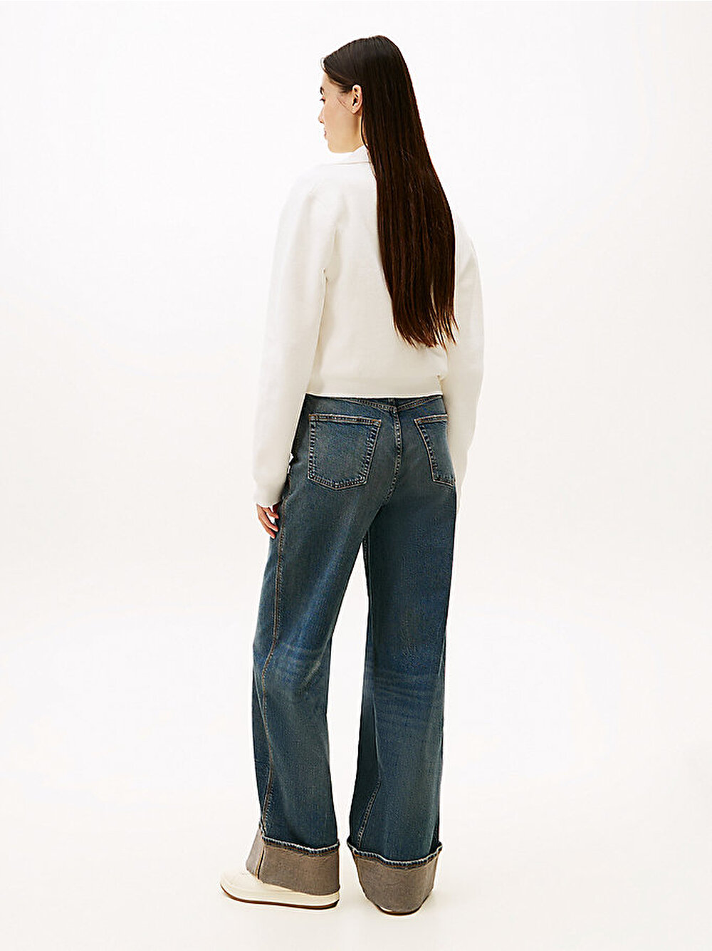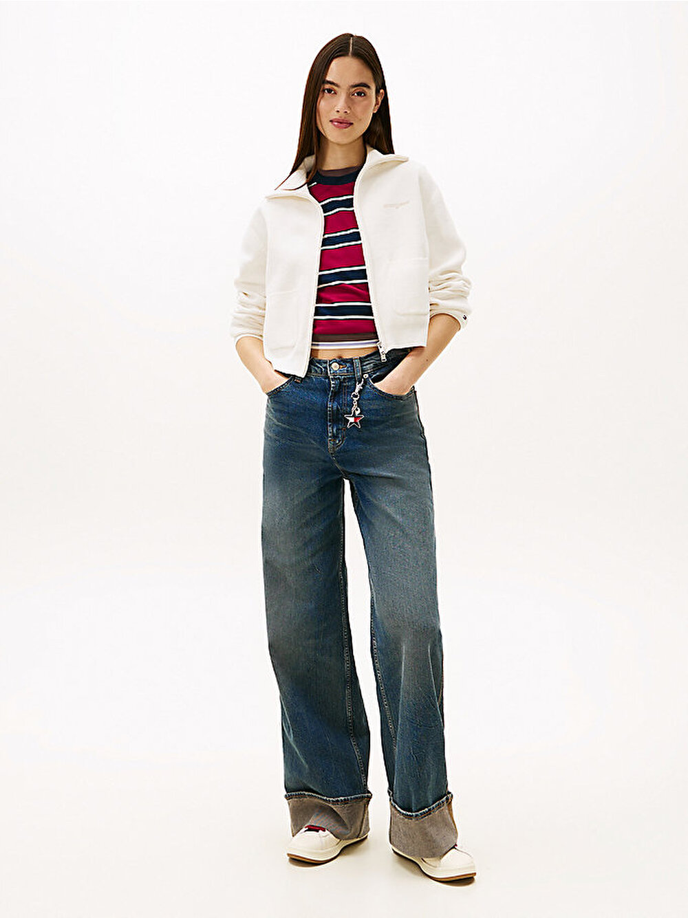 - Göğüste Tommy Jeans serif yazı tipli çapraz dikiş logosu
