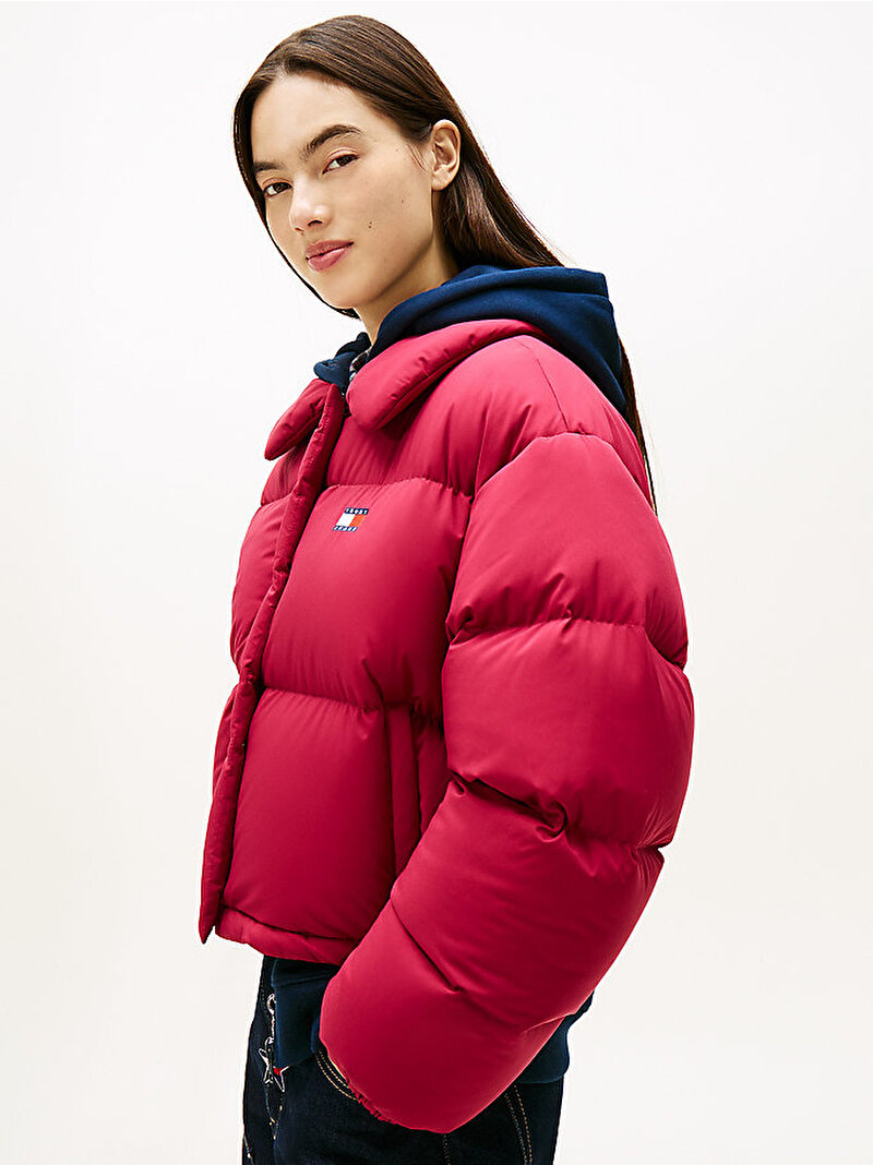kadın tjw crop badge colar puffer mont