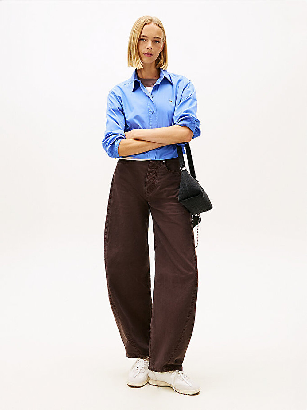 Saf pamuklu poplin kumaştan üretilen bu smart gömlek, crop boyu ve relaxed-fit kesimiyle güçlü bir siluet sunar.
