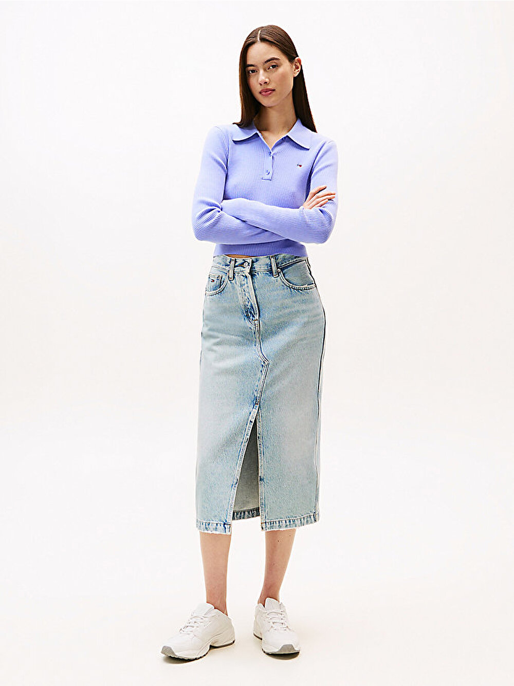 Bu kazak, polo tişörtün klasik stilini uzun kollu ve ribana örgülü penye pamuk kumaşla birleştiriyor.
