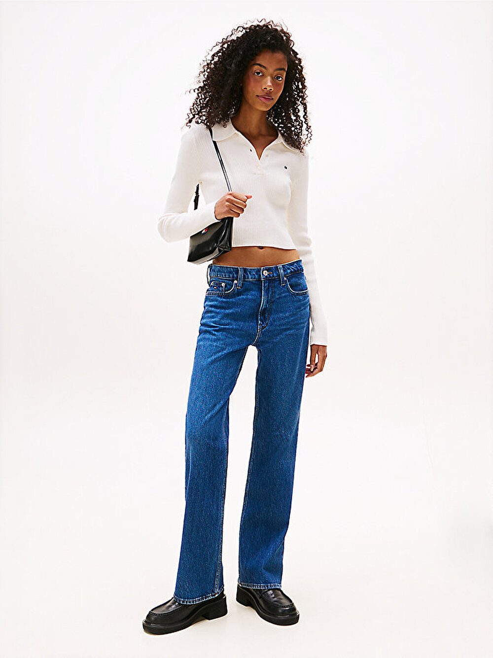 Bu kazak, polo tişörtün klasik stilini uzun kollu ve ribana örgülü penye pamuk kumaşla birleştiriyor.