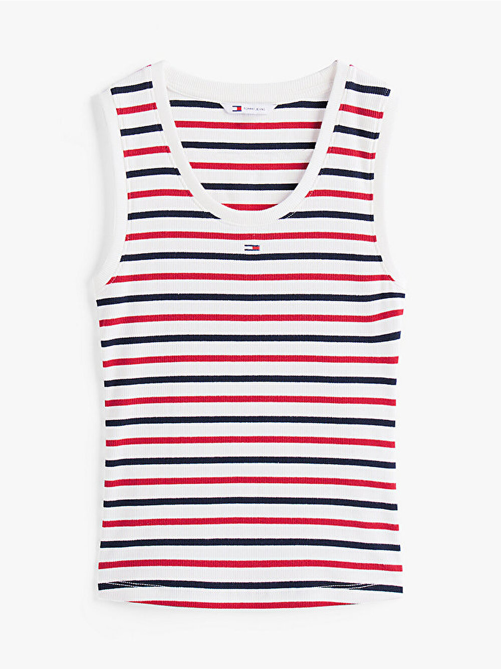 Kolsuz ve vücuda oturan slim fit kesimi ile öne çıkan bu tank top, tamamen ribanalı dokusuyla sıcak havalar için ideal bir parça sunar.