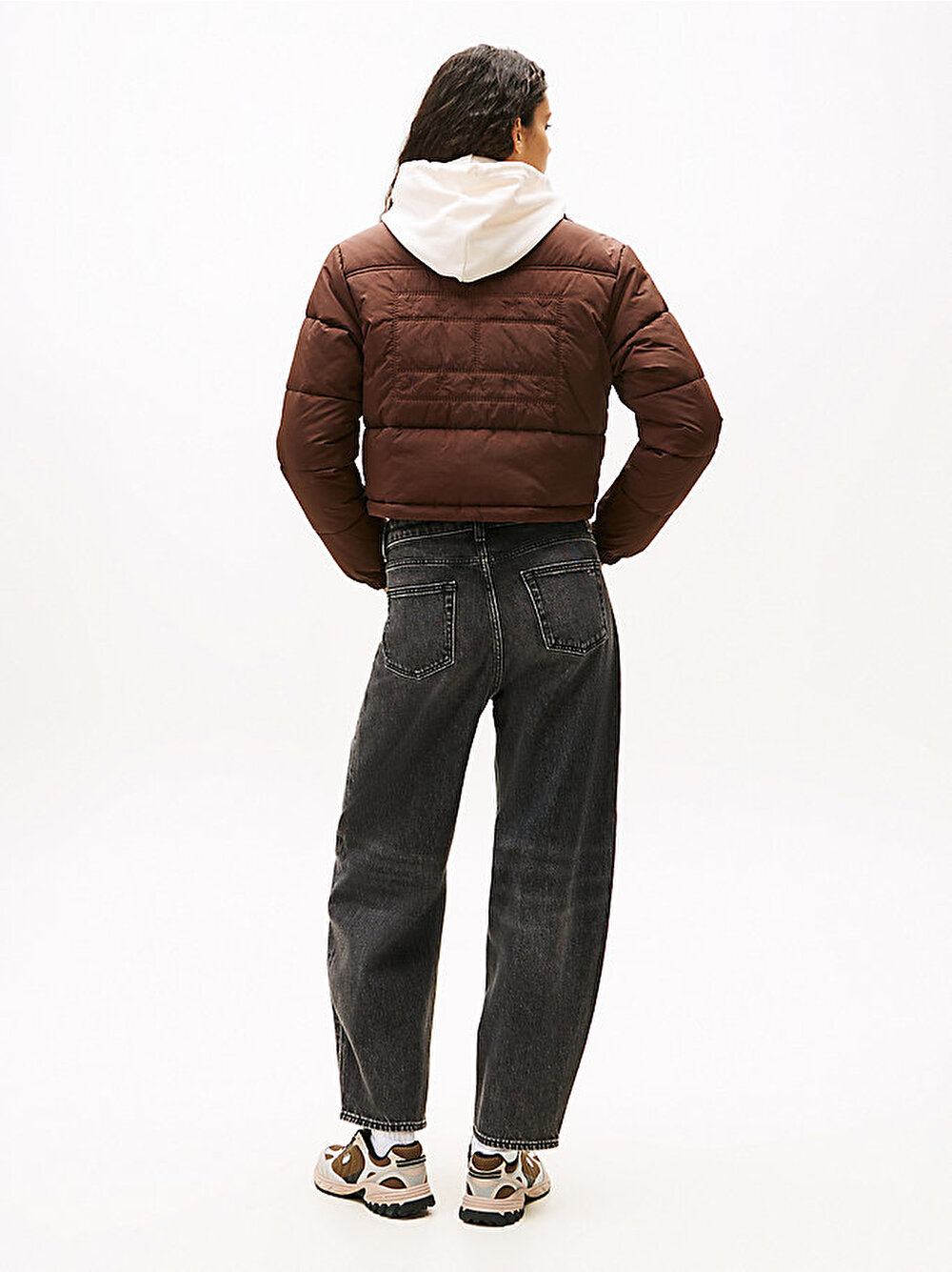 Rahat kesimi ve arka kısmındaki tonal Tommy bayrak nakışı ile bu şişme mont, iddialı bir sokak stili estetiği yansıtır.