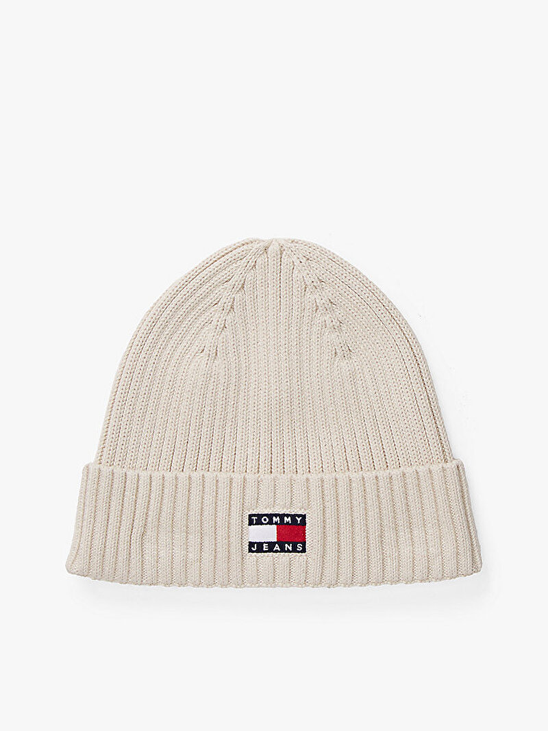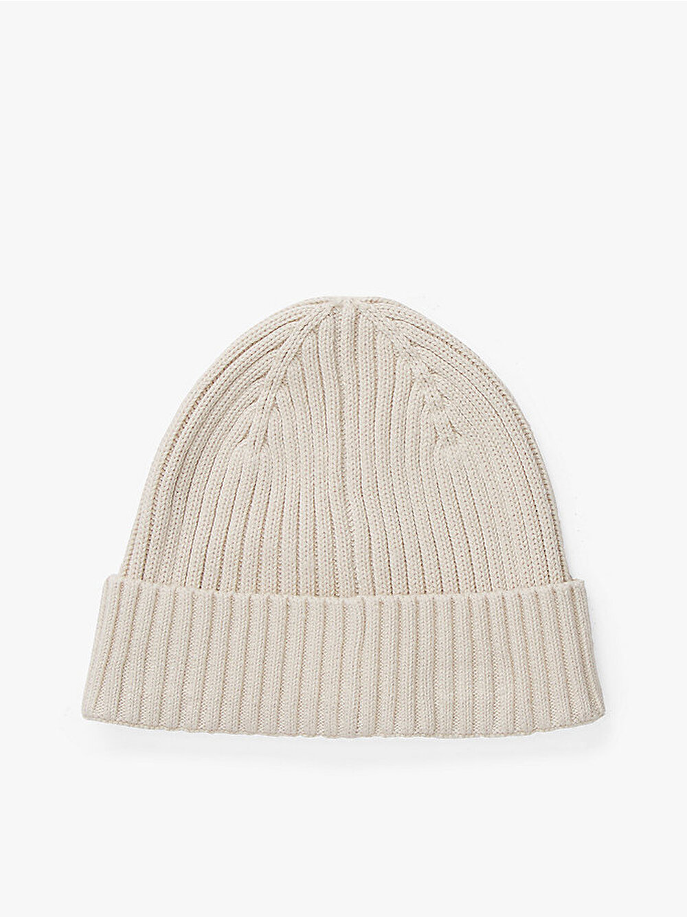 Geniş kıvrımlı manşeti ve imzalı marka detaylarına sahip bu rahat ribana örgülü saf pamuklu bere ile patenci havasını yansıtın.