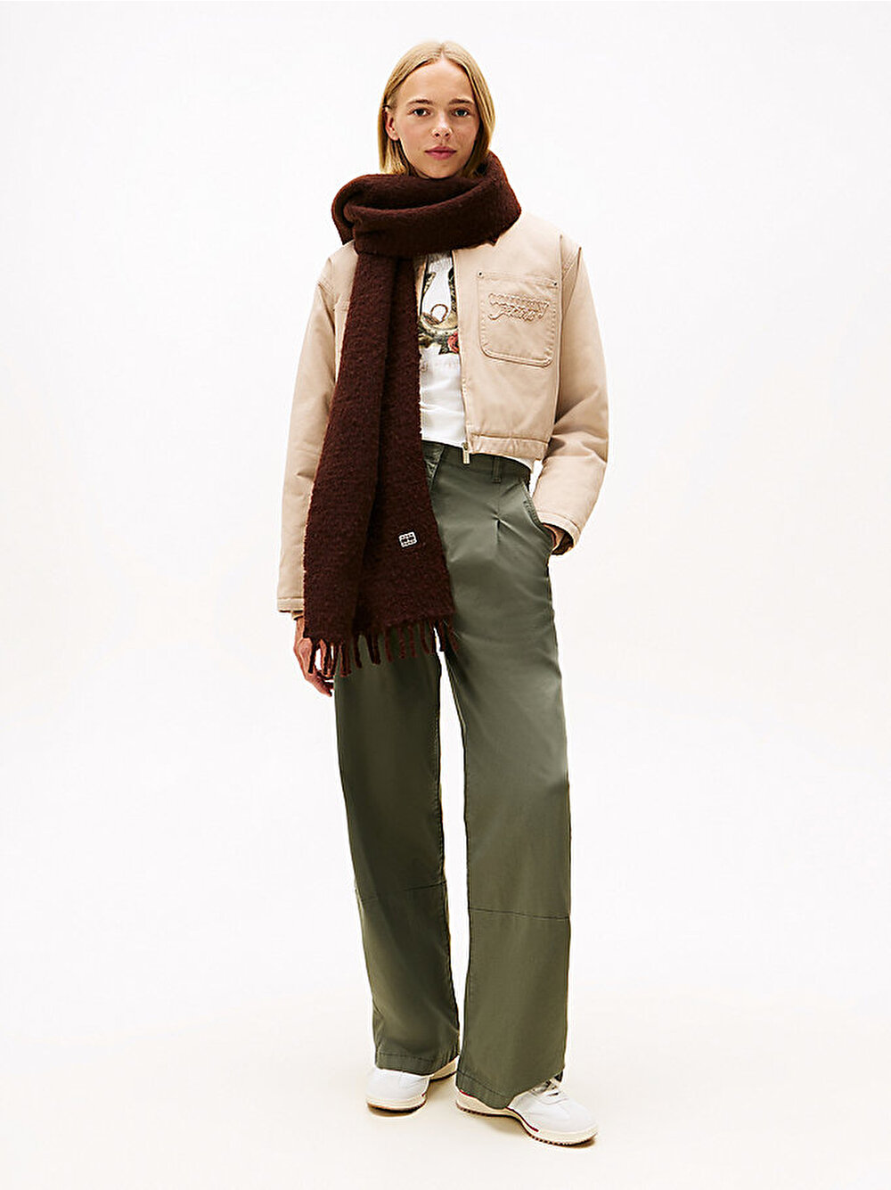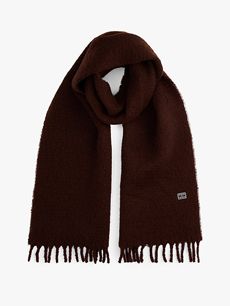 Uçlarında eğlenceli saçaklarla tamamlanan bu yün karışımlı atkıyla soğuk günlerde konforu ve stili bir araya getirin.