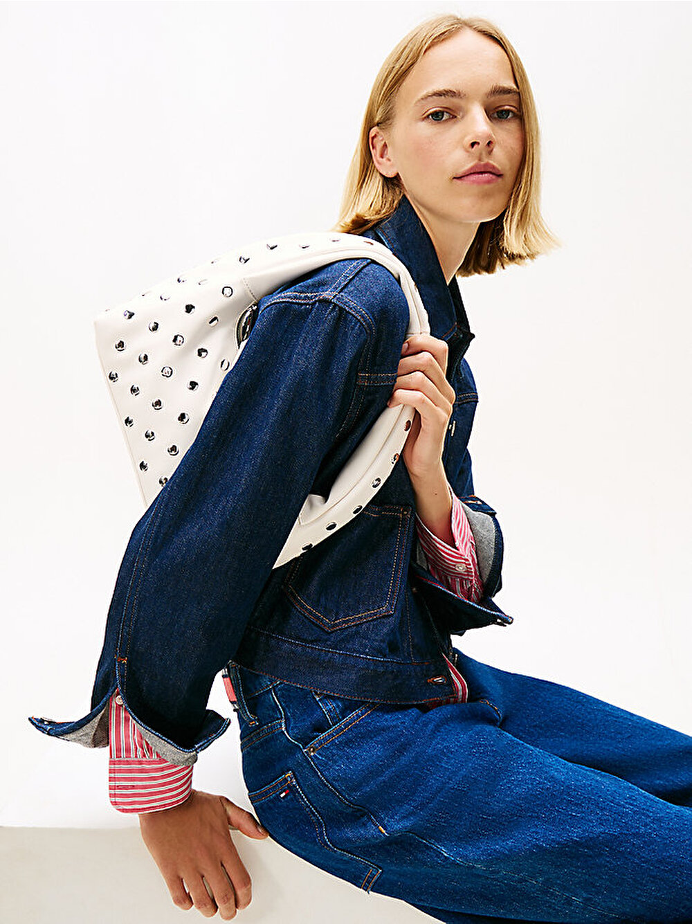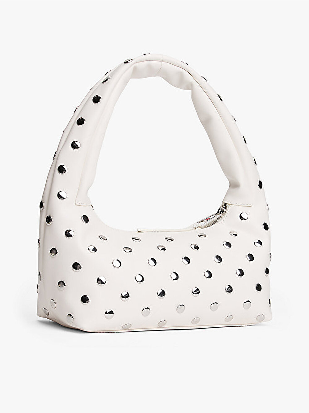 Baştan aşağı metal perçinli ve kullanışlı fermuarlı bir iç cebe sahip bu omuz çantası ile kıyafetlerinize sıra dışı bir enerji katın.